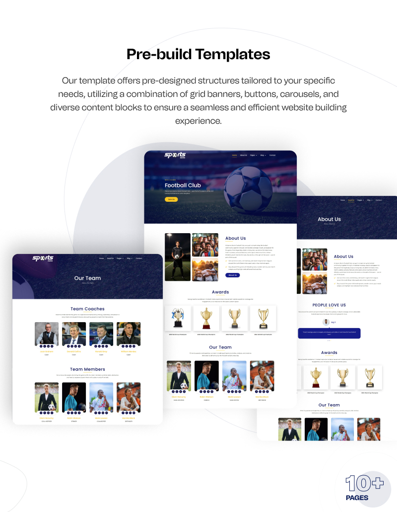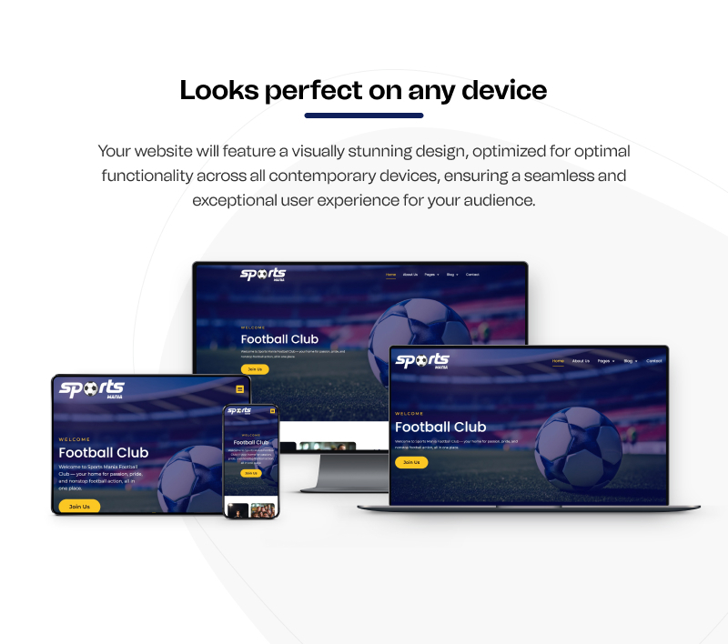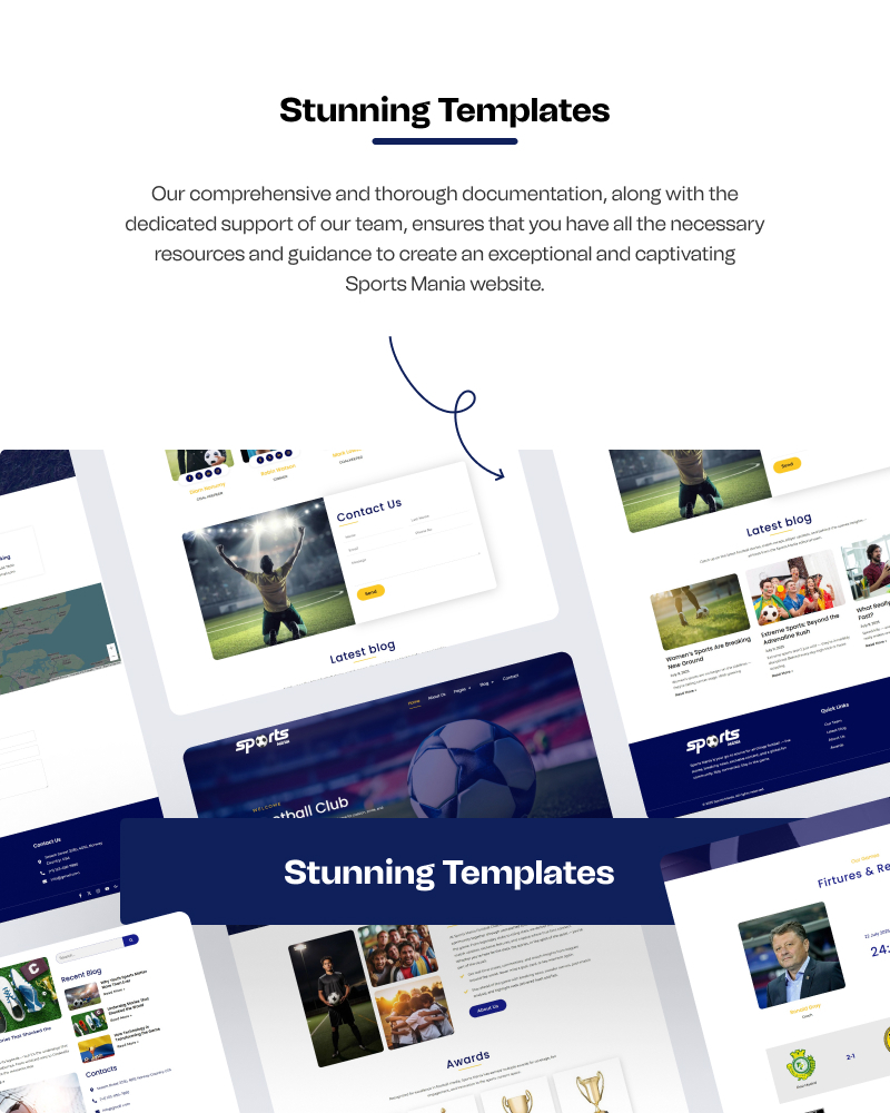 With Sports Mania, you can create a multi-page, multi-purpose website 🌐 ideal for sports clubs, academies, or community-focused platforms. Built for flexibility and style, it combines energy and elegance to highlight your team's identity.