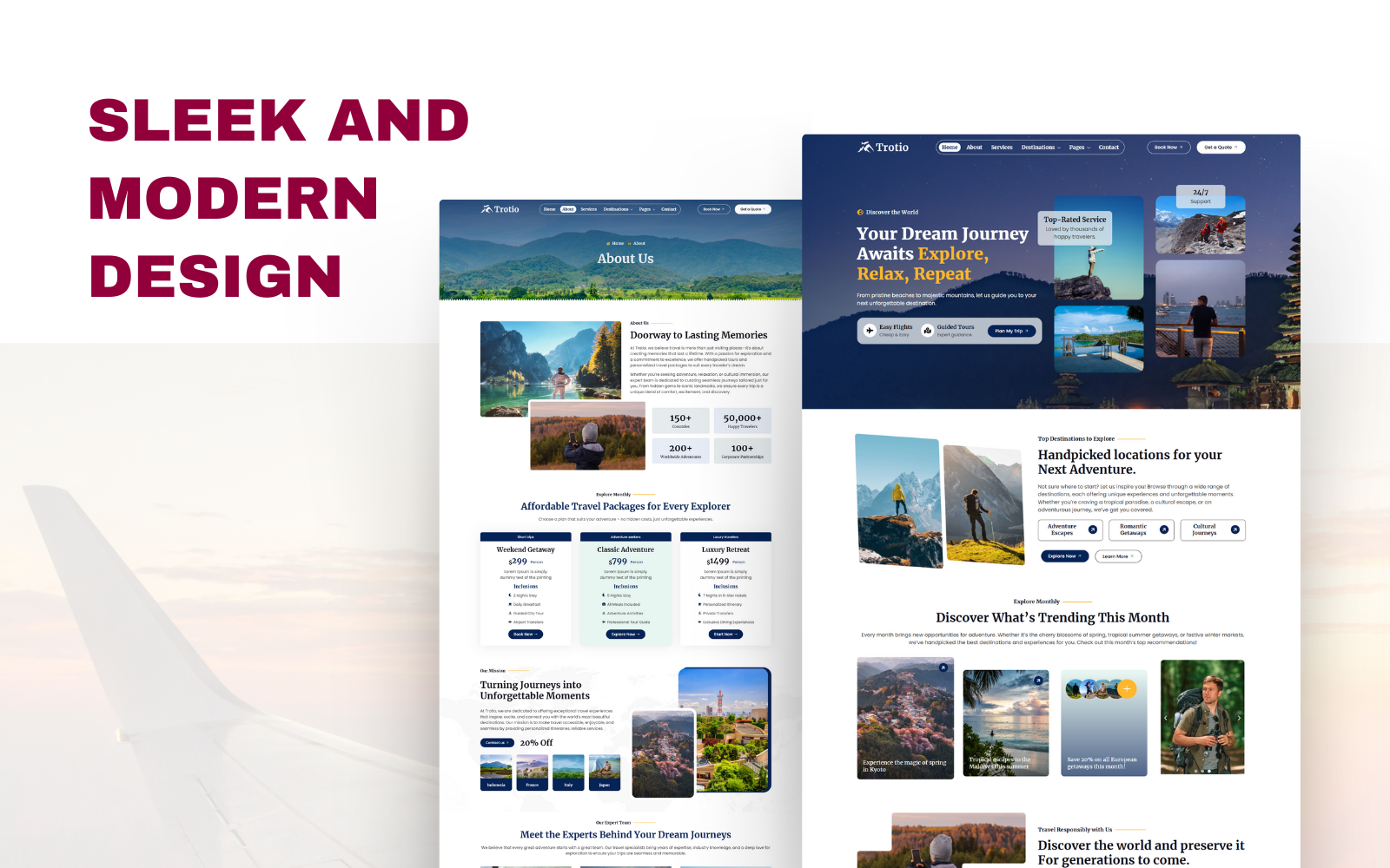 With a modern and responsive design, Trotio ensures an immersive browsing experience across all devices. Featuring an intuitive layout and seamless navigation, your visitors can explore travel destinations, learn about your services, and book their next adventure effortlessly. Built with Elementor’s drag-and-drop functionality, customization is quick and easy—no coding required.
