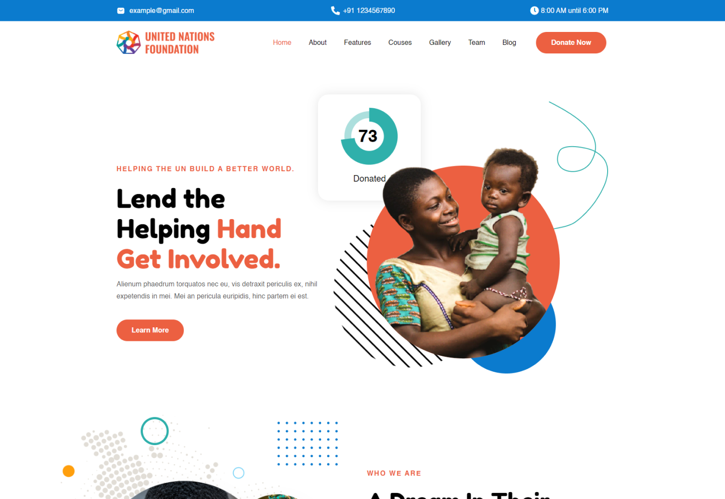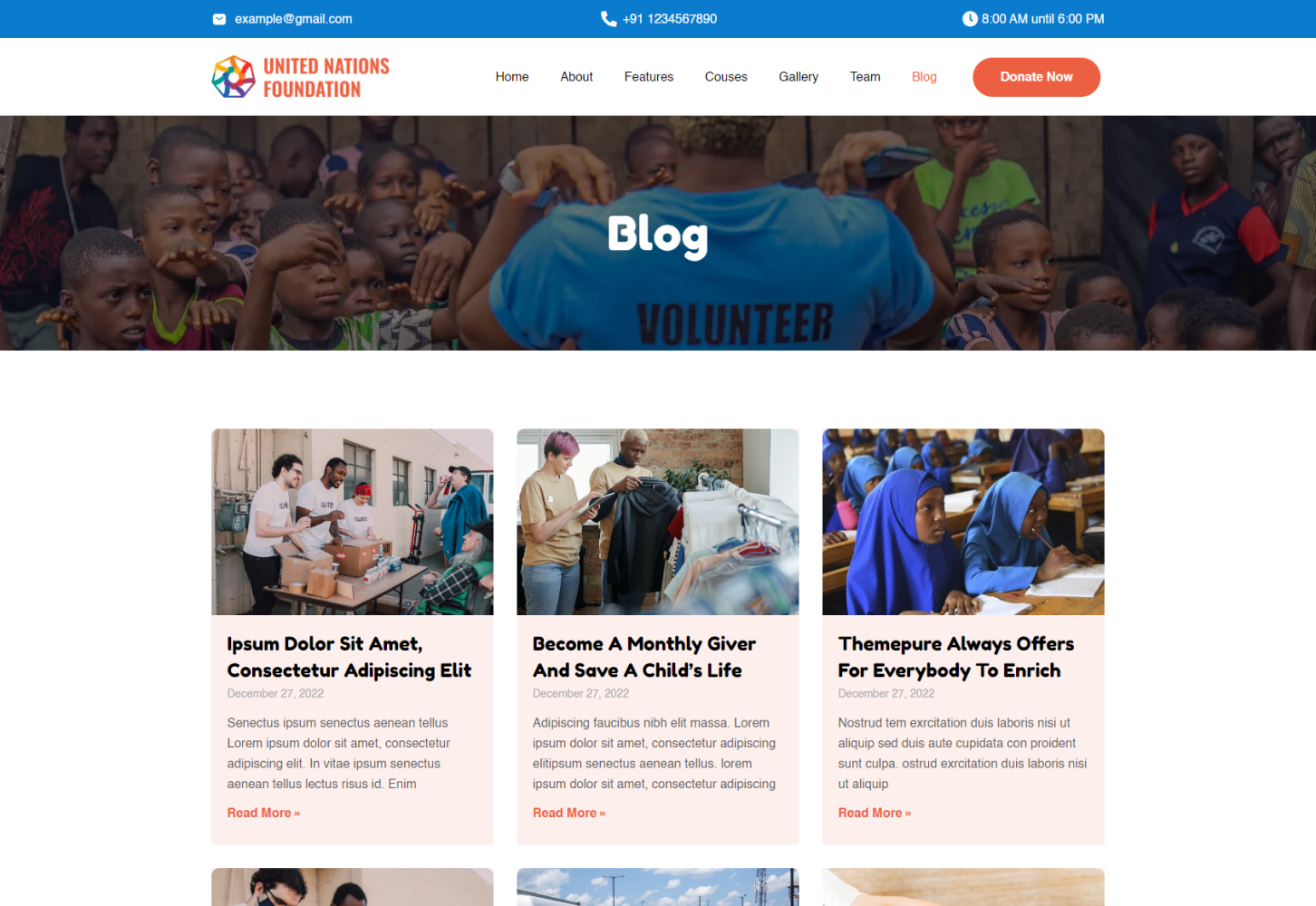 In UN Foundation - Donation & Charity you get a Unique Homepage with Blog Page and Blog Single Page design. You can edit them according to your requirements. All the typography or color settings are global so you just edit them with a single click. To edit this Elementor template kit you don't have to require any coding skills. The best choice for online marketing and advertising a charity is this website with a quick load time.