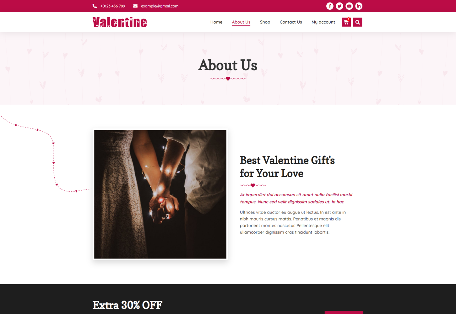 Valentine - Romantic Love Gifts Store Elementor Template Kit is a really wonderful product-based website template. This is for gift stores and other product-selling agencies. Valentine store provides you with some lovely designs with e-commerce functionality with beautiful WooCommerce pages design. We provide beautiful customized designs for valentine's gift stores.