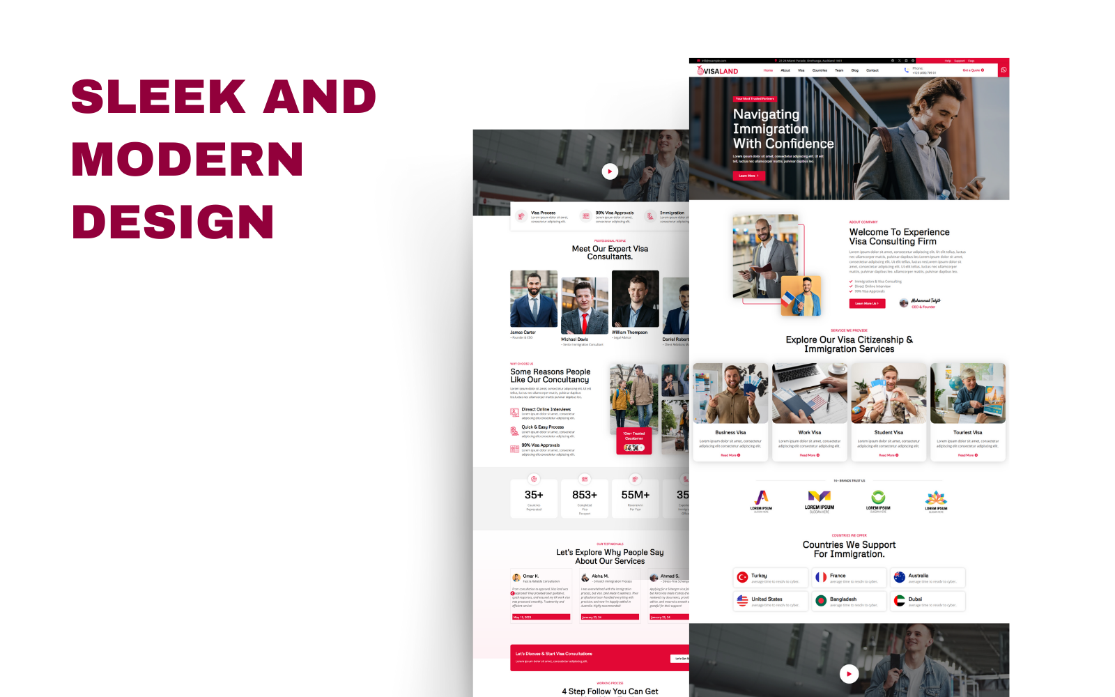 With Visa Land, you get a conversion-focused, beautifully designed landing page that makes it easy to showcase your expertise and attract new clients. Launch your professional immigration website today!