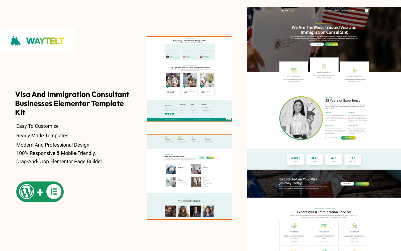 Waytelt is a modern Elementor Template Kit designed to help you build a professional and fully functional website for Visa and Immigration Consulting. Perfect for visa agencies, immigration consultants, or businesses offering services like PR Visa, Job Visa, Study Visa, and more.