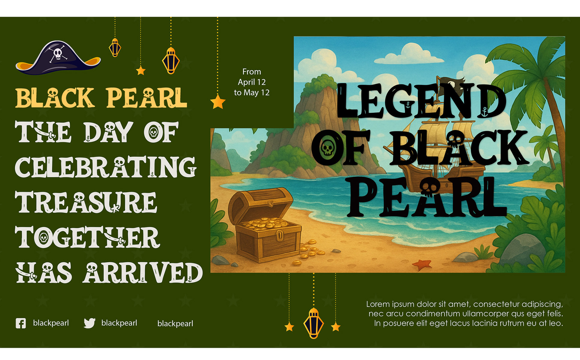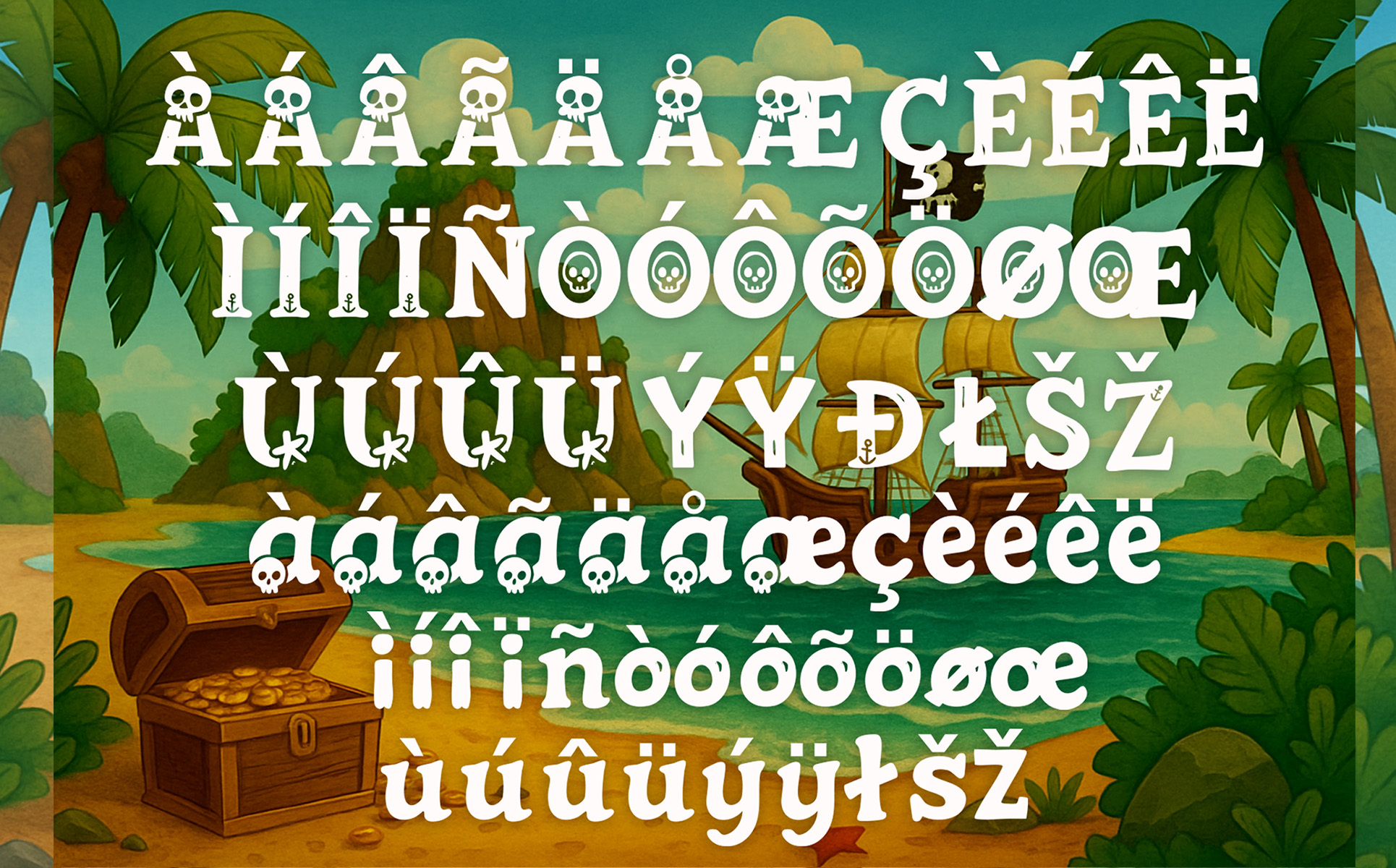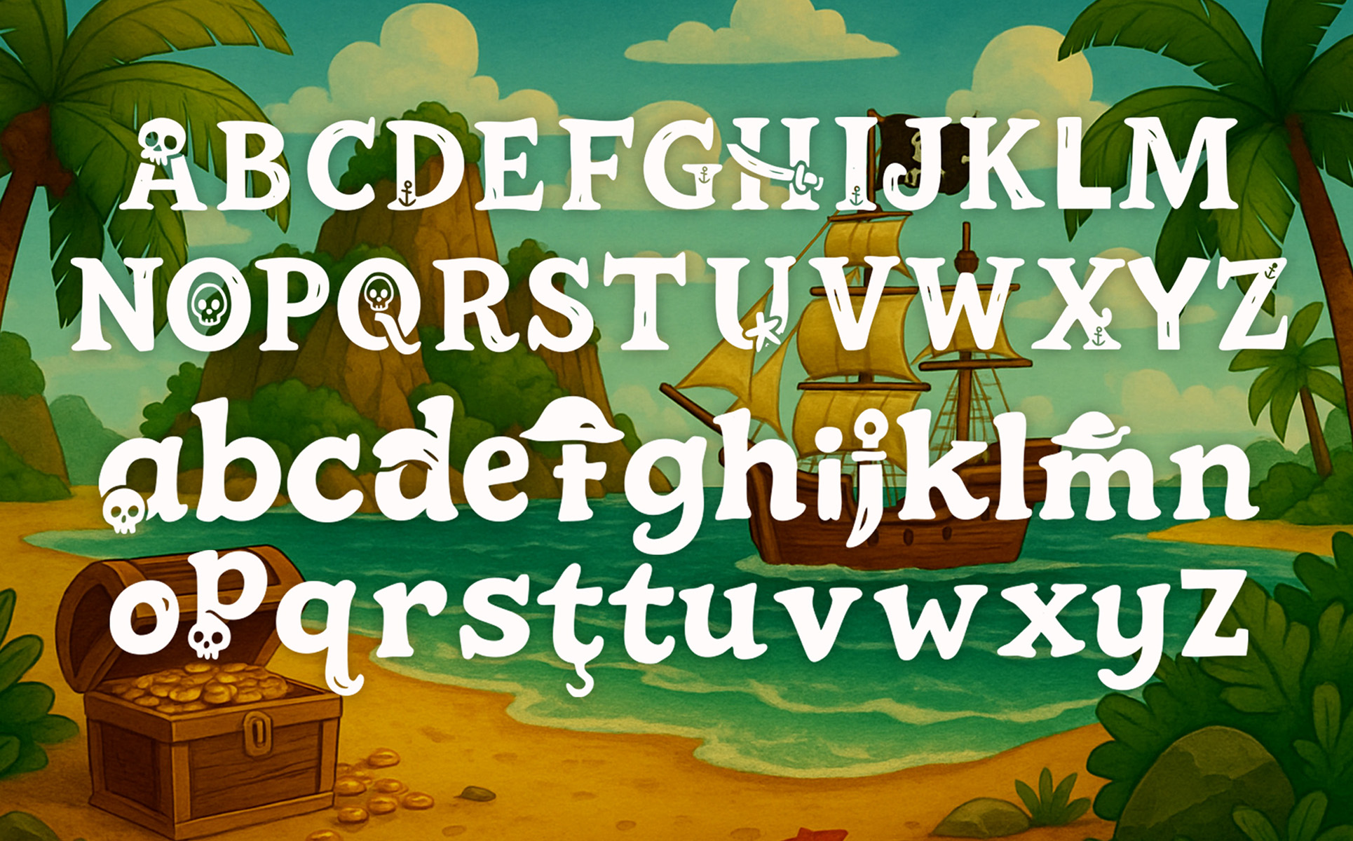 A fantasy pirate-style decorative font specially designed for children's projects. Perfect for book titles, adventure posters, pirate party invitations, and creative branding. This typeface blends excitement, imagination, and exploration with a child-friendly cartoon and illustrative touch.