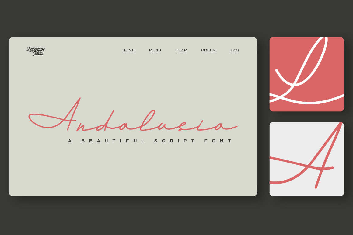 Andalusia script is perfect for photography, watermark, social media posts, advertisements, logos & branding, invitation, product designs, label, stationery, wedding designs, product packaging, subheader or header, special events, or anything that need handwriting taste.