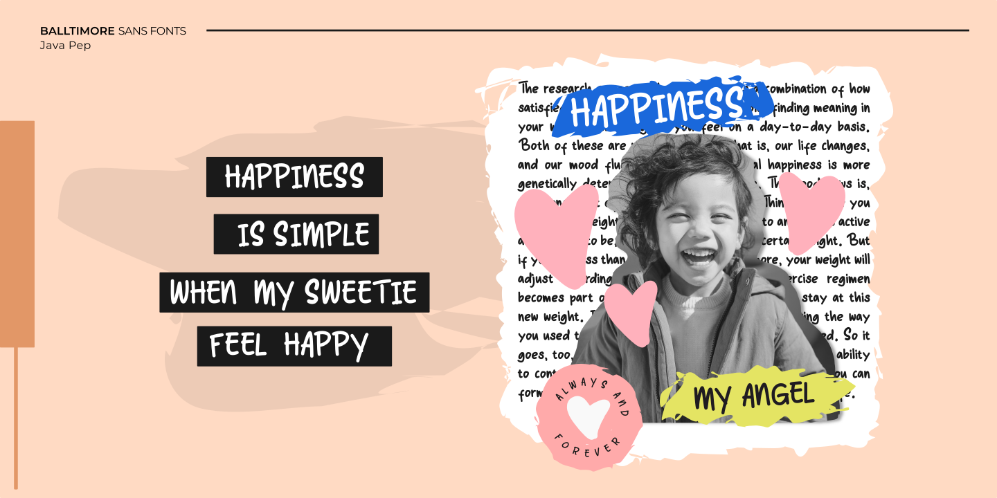 Combine and pair your awesome design with Balltimore Sans, Thanks for using this font, don't hesitate to give me the message. Have a nice day :)