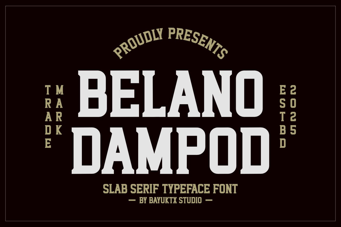 This font is designed to deliver clarity, stability, and impact—perfect for designs that demand authority and personality. With its clean slab serifs and strong structure, Belano Dampod works seamlessly across branding, editorial layouts, packaging, posters, and digital media.