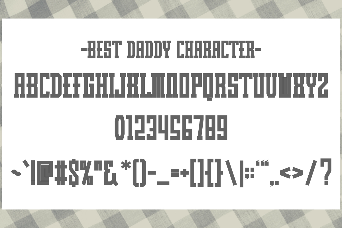 Best Daddy is a robust and classic condensed slab serif font that embodies strength, heritage, and vintage collegiate style. Its powerful, all-caps letterforms feature solid block serifs and a tight vertical structure, giving it an undeniable sense of authority and reliability. This typeface is perfect for sports branding, academic apparel, merchandise, masculine designs, posters, and any project that requires a tough, traditional, and memorable aesthetic with a retro athletic feel. Best Daddy makes any headline look instantly established and commanding.