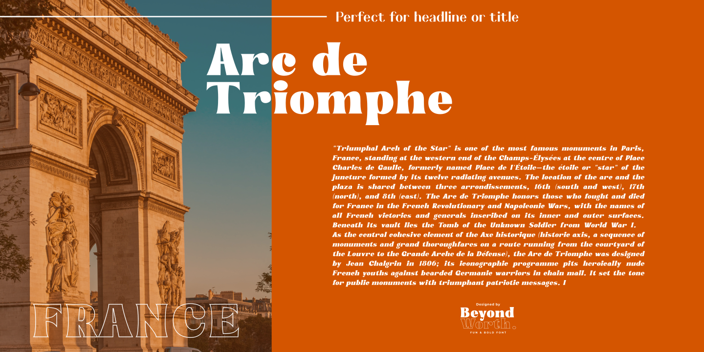 Introducing a fresh product that can be a reference for your collection, we called Beyond Worth, this font has a fun and bold style so your project can feel more outstanding and elegant. Beyond Worth made with regular and outline styles so you can mix and match for your design project. Beyond Worth font is perfect for headline, title, logotype, branding, bold text, etc that especially for the purpose feel outstanding and stand out.