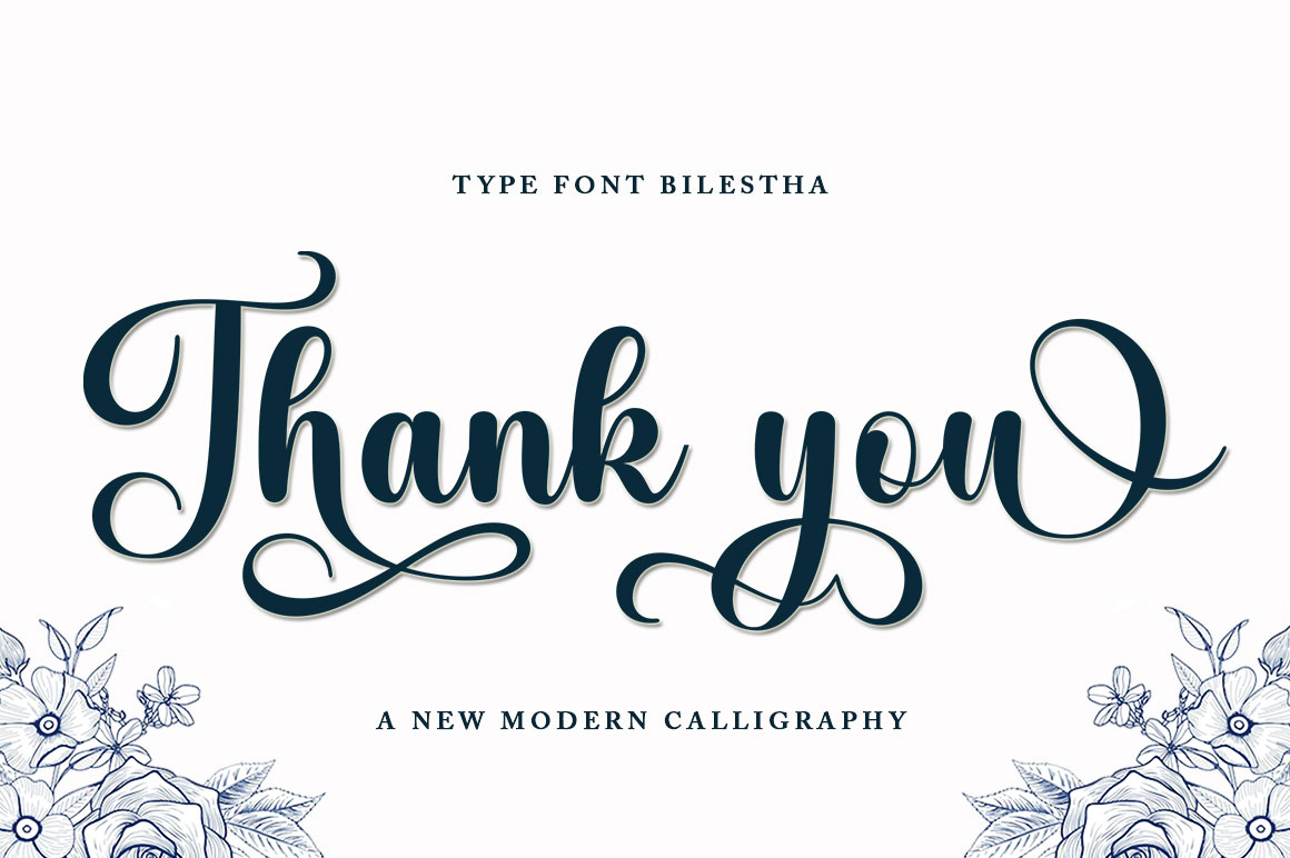 Bilestha is attractive because it is sleek, clean, feminine, sensual, glamorous, simple and very easy to read, thanks to its many beautiful letter relationships. I also offer a decent number of stylistic alternatives for some of the letters. Classic style is very suitable to be applied in various formal forms such as invitations, labels, restaurant menus, logos, fashion, make up, stationery, novels, magazines, books, greeting/wedding cards, packaging, labels or all kinds of advertising purposes. . . . . . . . . .