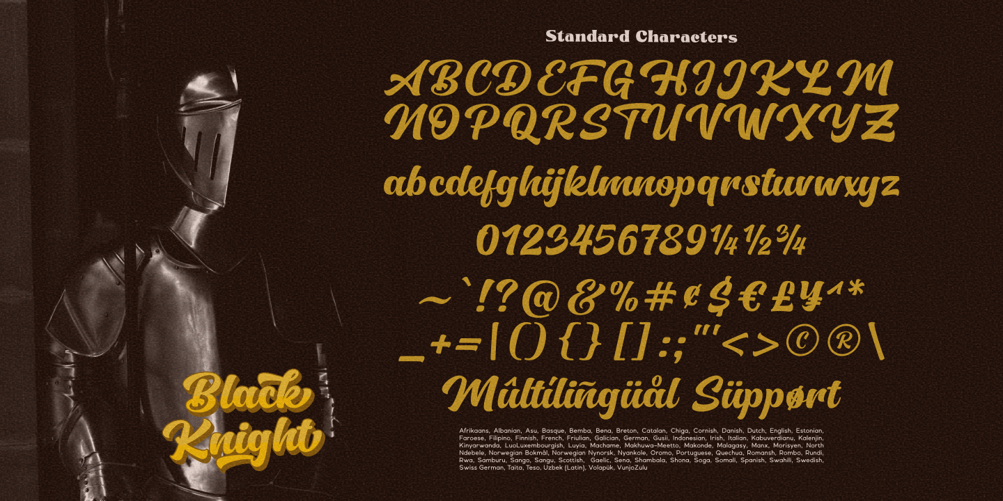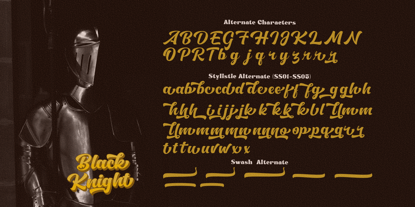 – Black Knight Regular (otf, ttf, web font woff, and woff2)