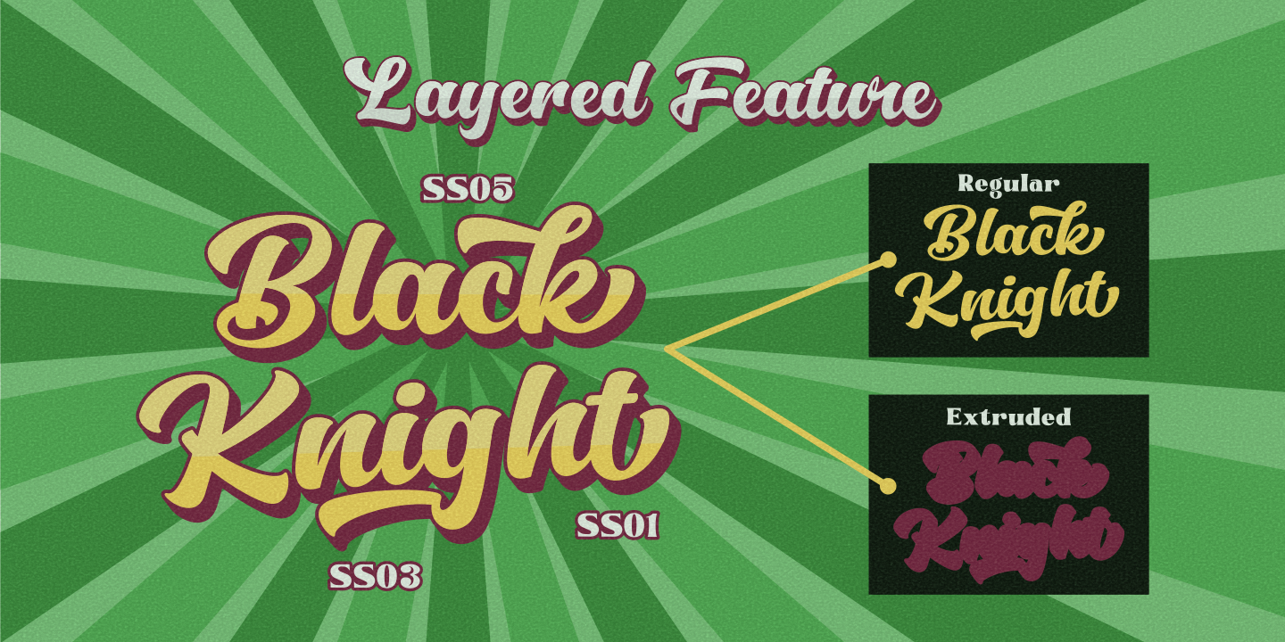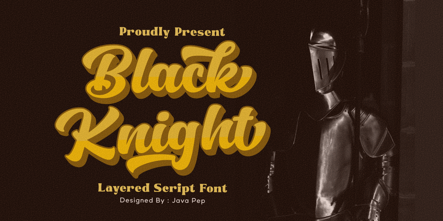Proudly present fresh from the oven, the layered script font called Black Knight Font. For use the layered font the regular font must to placing in front of and extruded font for background. This font is designed to emphasize beauty and timelessness, so it can be used on classic, modern, and contemporary themes. Black Knight font comes with lot of alternate glyphs such as alternate, staylistic alternate, dan swash. This font also has multilingual support more than 25 languages.