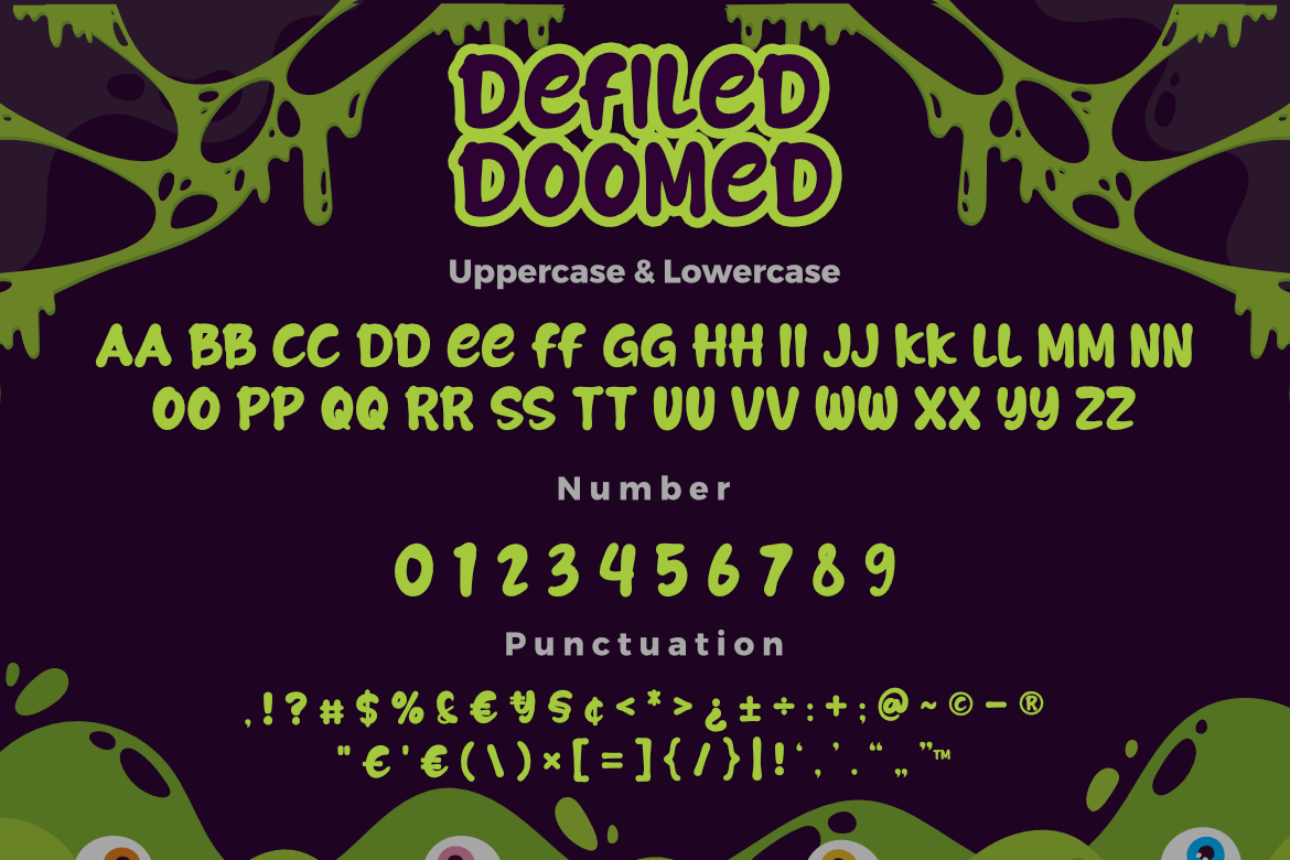 With _Defiled Doomed a Horror Display Font,_ your designs will scream with personality—perfectly blending fun and fear to create visuals that are both chilling and unforgettable.