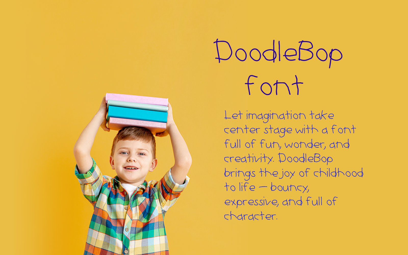 Let imagination take center stage with a font full of fun, wonder, and creativity. DoodleBop brings the joy of childhood to life — bouncy, expressive, and full of character.