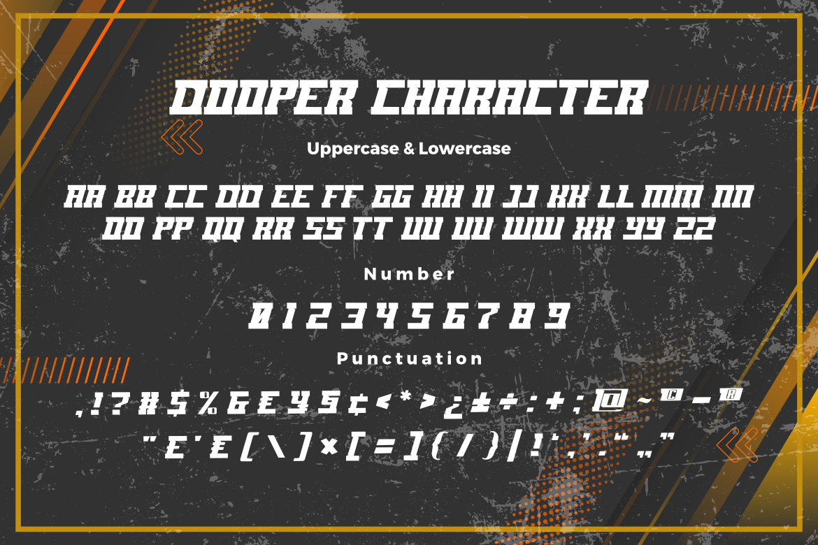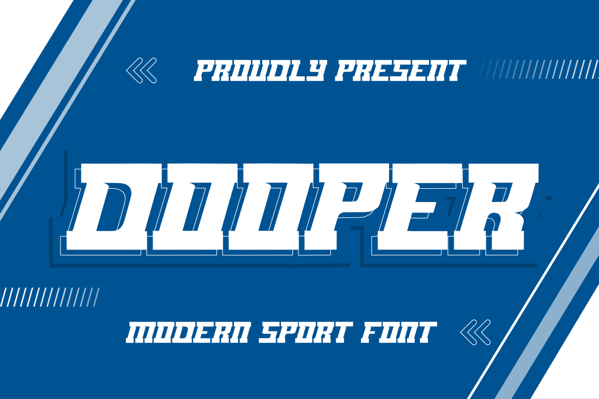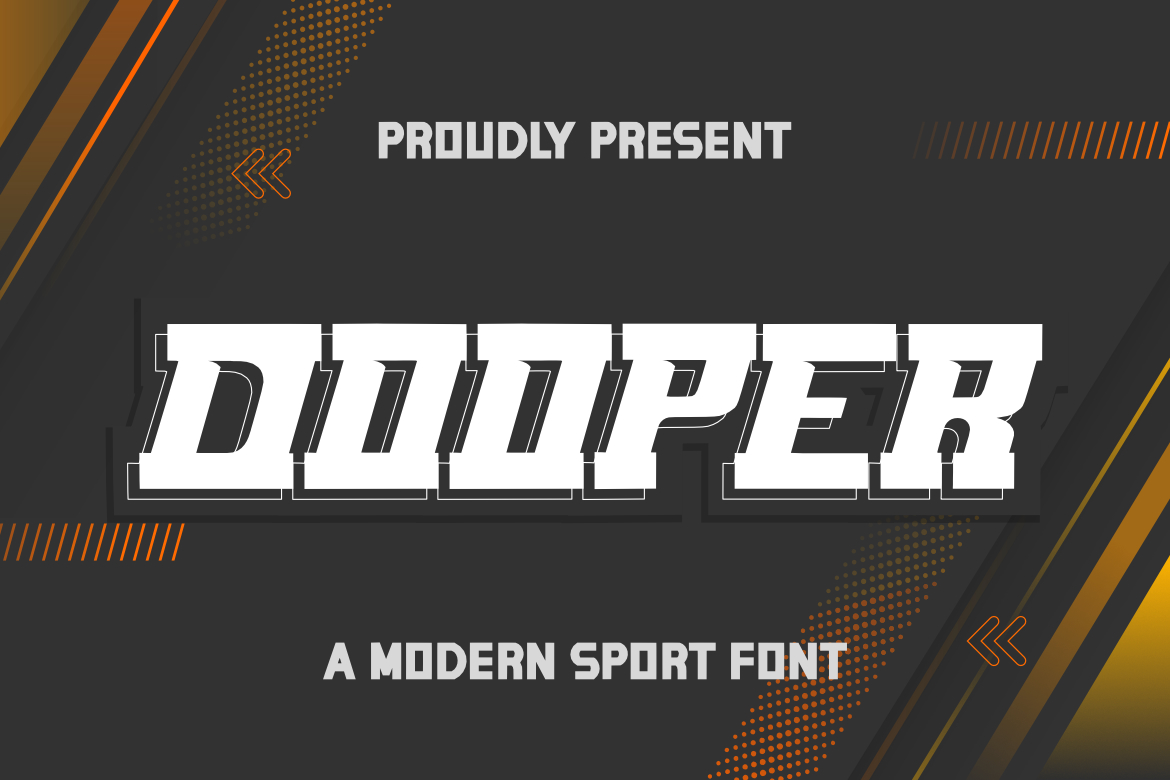**DOOPER Sport Font**, This font is made with a high premium quality level which you can use as flyers, quotes, posters, banners, packaging, merchandise, logotypes and much more.