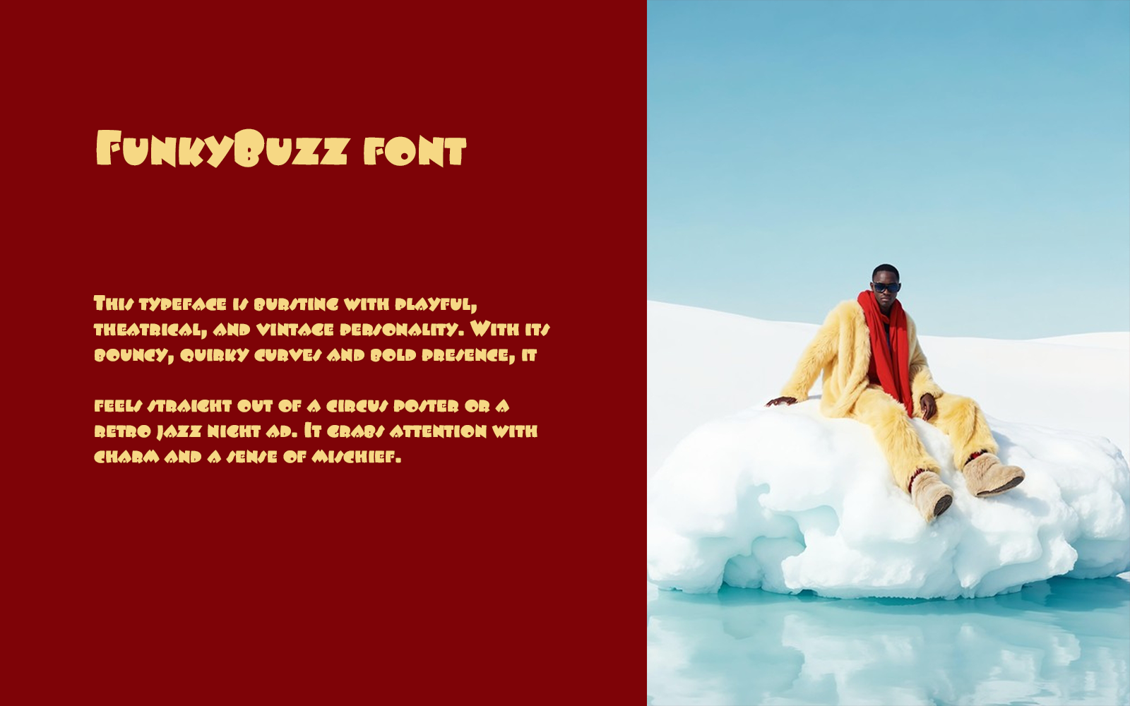 Perfect for posters, packaging, or party themes, FunkyBuzz guarantees smiles before words.