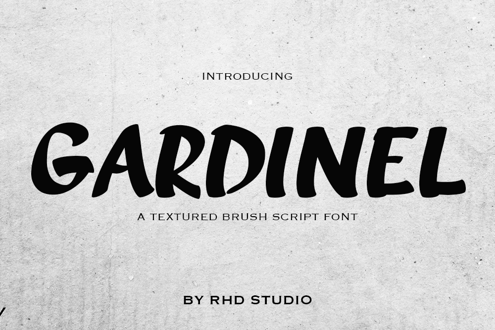 GARDINAL Textured Brush Script is a textured hand brush font. Gardinal Typeface is a flowing and stylish brush font display, created with the help of a pen tablet. Get inspired by her unique and beautiful style and add it to your favorite designs!
