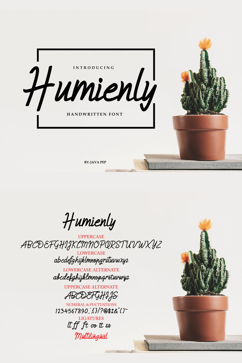 1. Humienly and Humienly Alternate. Humienly is origianl font with upper, lower, numeral & punctuations. Humienly Alt is alternatif font of humienly, this font have style more cursive. You can change Humienly to Humienly Alt or combine both.