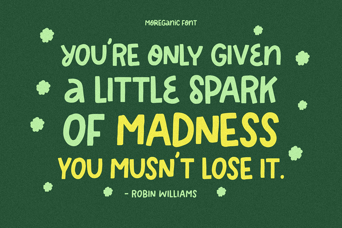 Moreganic Font is ideal for branding projects or packaging that need an organic and playful feel.