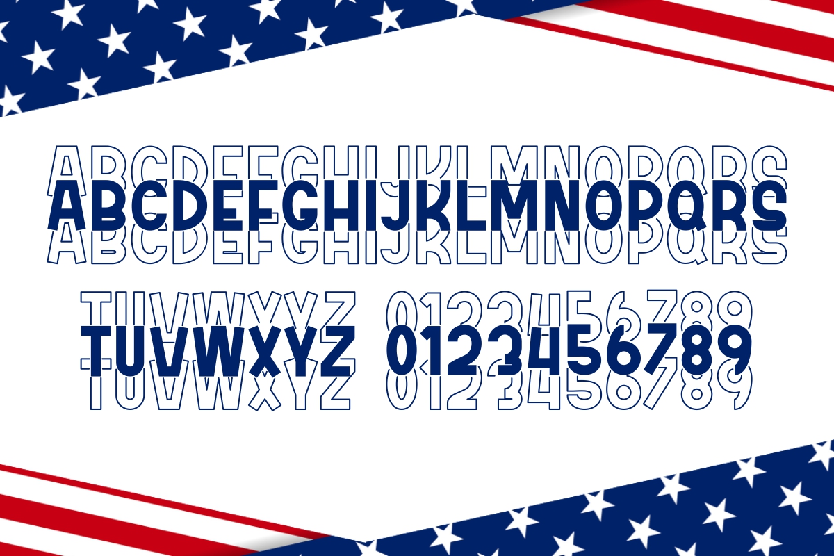 Introducing PATRIOTIC, a dynamic and powerful display font that redefines modern headline typography. Its greatest strength lies in its unique layered system: the package includes both Solid and Outline files, enabling designers to effortlessly create eye-popping, professional, two-tone effects with complete control over color and depth. Inspired by bold athletic graphics and modern poster design, Patriotic provides maximum visual impact. Its clean lines and commanding presence make it suitable for projects that require a strong, clear, and high-energy message.