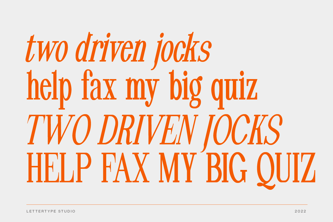 Pheromone is our masterpiece modern serif font and is perfect be your headline font. The core of Pheromone is a condensed style, this is why can be perfect to be your headline.