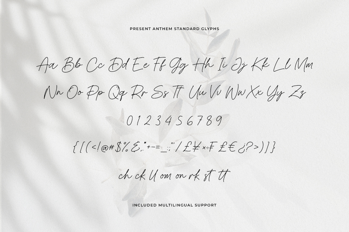 Present Anthem Font is a modern signature script font, described by an elegant touch, perfect for your favorite projects. It looks stunning on wedding invitations, thank you cards, quotes, greeting cards, logos, business cards, digital content and every other design that needs a handwritten touch. Fall in love with its incredibly distinct and timeless style and use it to create spectacular designs!