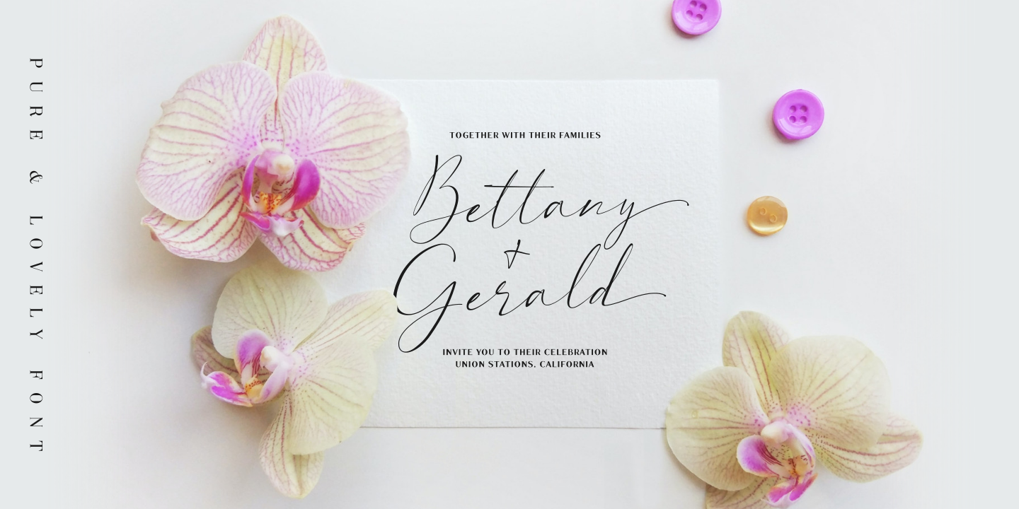 Introducing Pure and Lovely is pretty calligraphy font, this font is inspired by an organic handwritten. Pure and Lovely font has OpenType features such as ligature, alternate, stylistic alternate 1 (SS01) for initial or beginning swash, and stylistic alternate 2 (SS02) for the terminal form or ending swash, you can customize to make more pretty and elegant looks. Let's use this font in your project design for logo, branding, invitations, greeting card, headline, title, magazine, signature and etc.