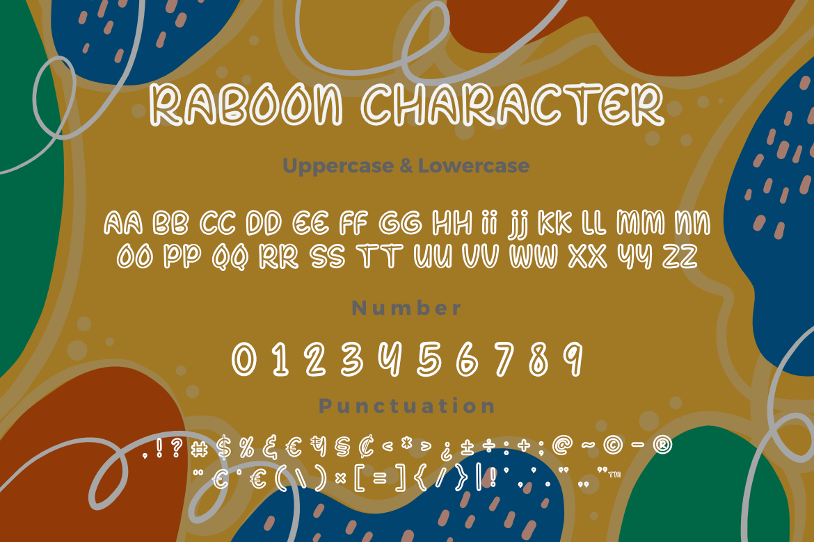 With _Raboon a Handwritten Outline Font,_ your designs will radiate a joyful, friendly, and creative atmosphere that makes every message more engaging and memorable.