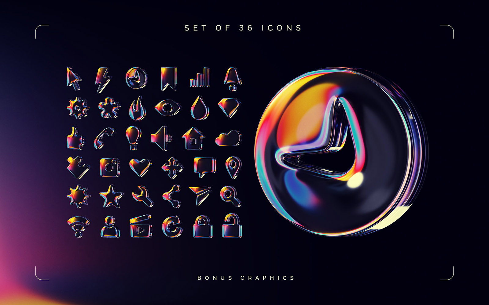 Refraction Ray is a color bitmap OpenType-SVG font, usable just like any standard OTF font. Additionally, the set includes high-resolution PNG files with transparent background (average resolution is 10 megapixels). Set of 36 icons in similar style are also provided in PNG format.