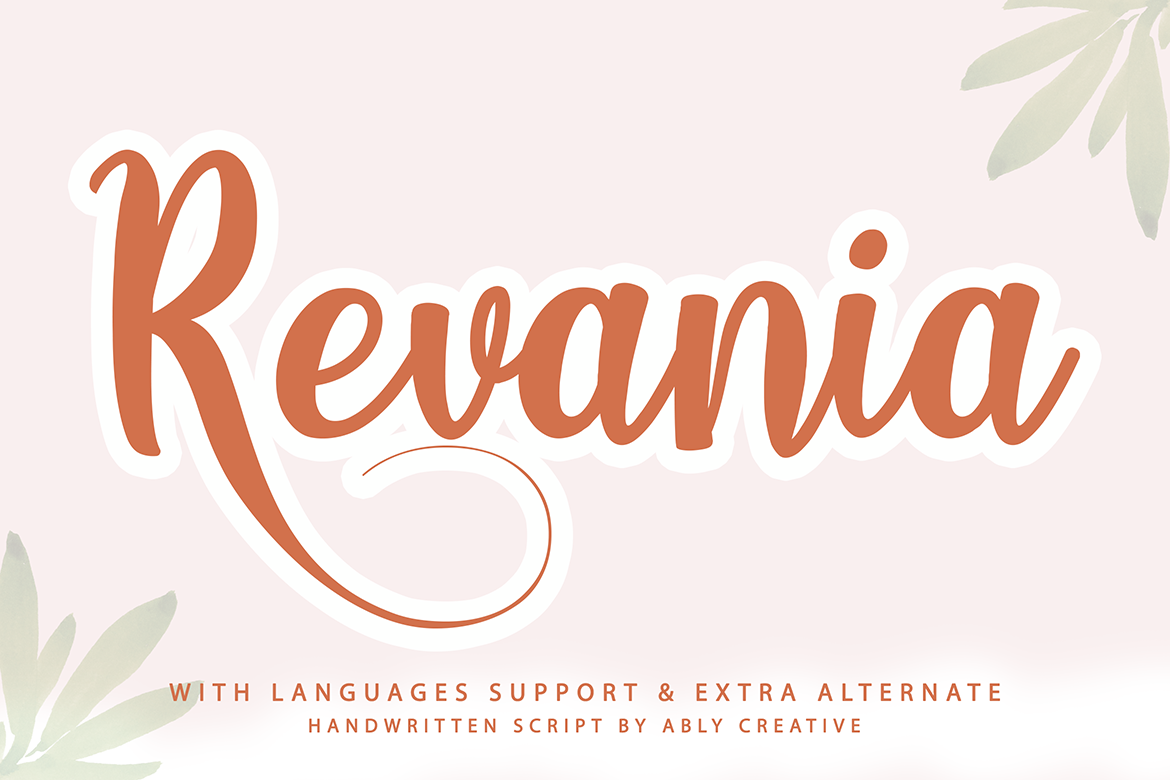 Revania is a modern calligraphy script font, created with both brushpen. dancing baseline with separate swashes that can be applied to the ends of all lowercase. Were painted on paper. scanned, vectorized and carefully made into a font. Revania includes ligatures, alternates and international support for most western languages, For the separate swashes font, type lowercase a-z for the end swashes or add swashes manually, Ideal for logo, wedding invitations, businness card, poster, merchandise, greeting cards, prints, blog banners, apparel, quotes and so much more!