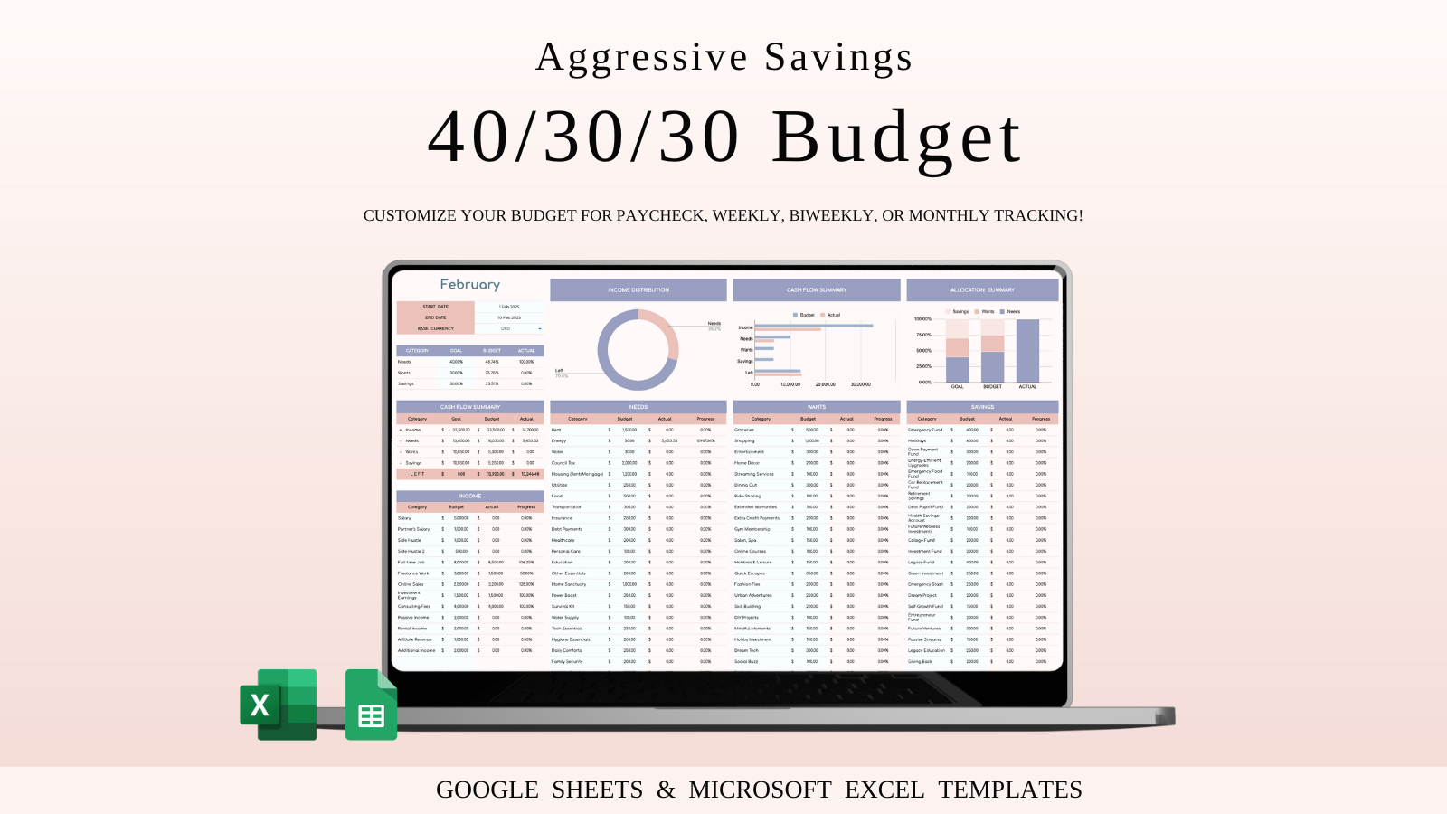 40/30/30 Budget Spreadsheet Template | Excel and Google Sheets