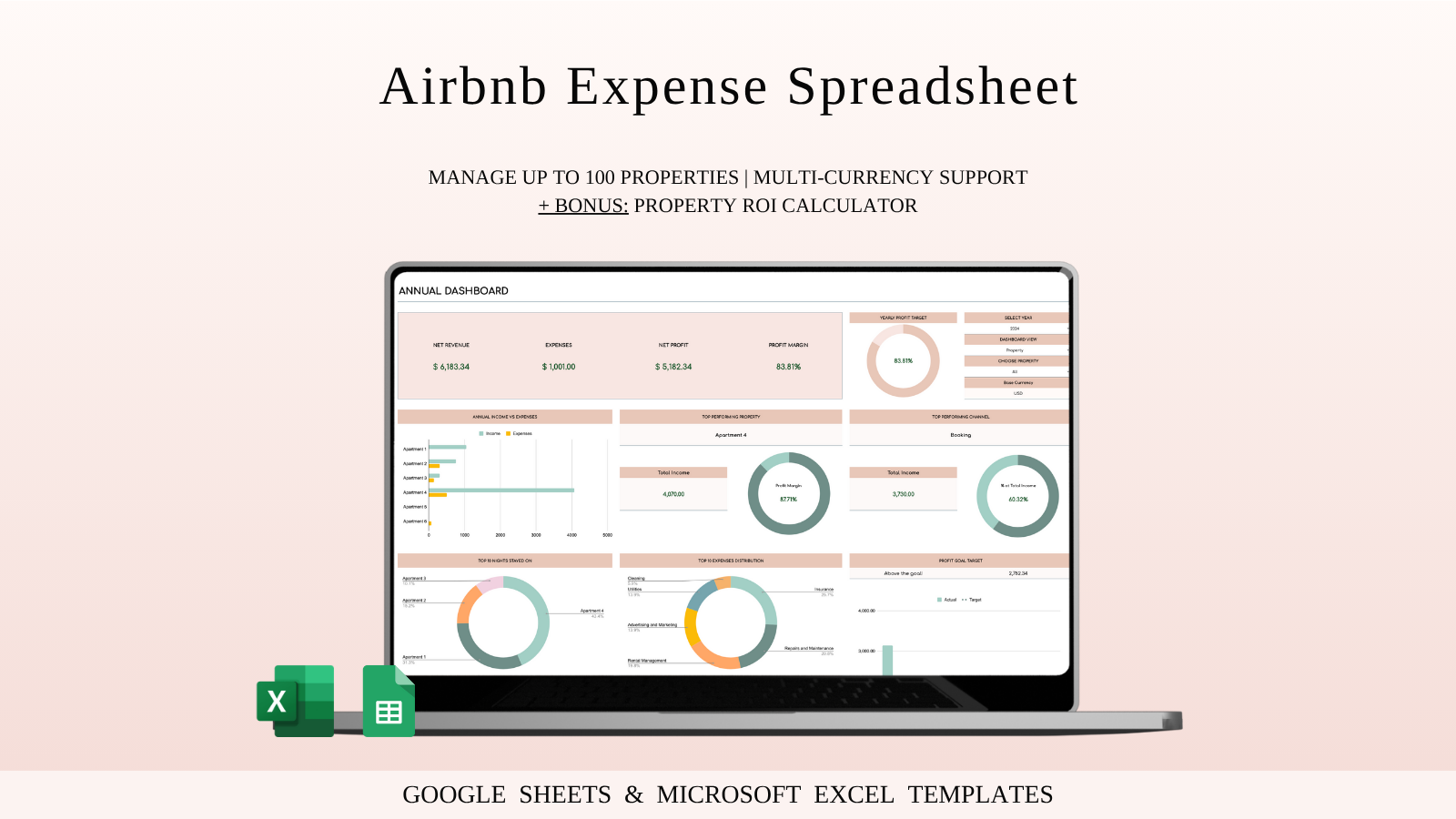 Airbnb Expense Spreadsheet Template | Excel and Google Sheets