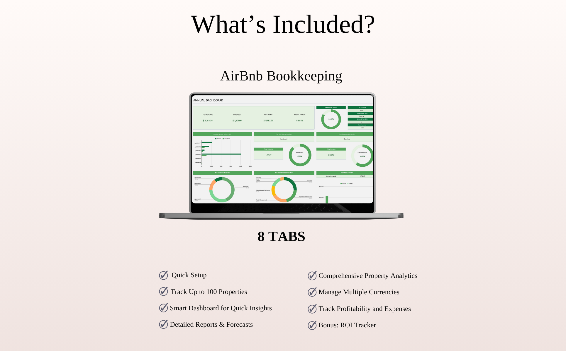Tailored for Airbnb hosts, this spreadsheet helps you record income, expenses, occupancy, and profitability — ideal for accurate reporting and tax time.