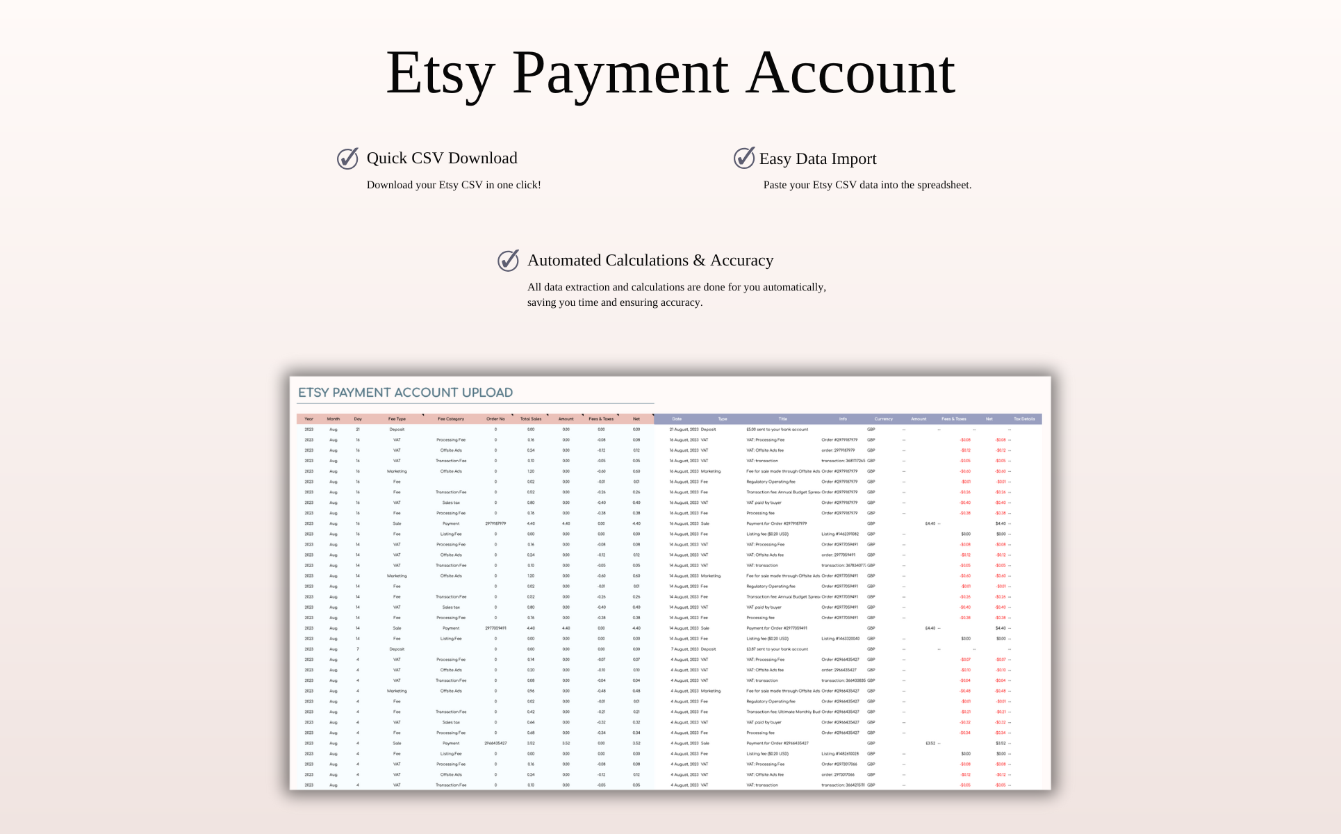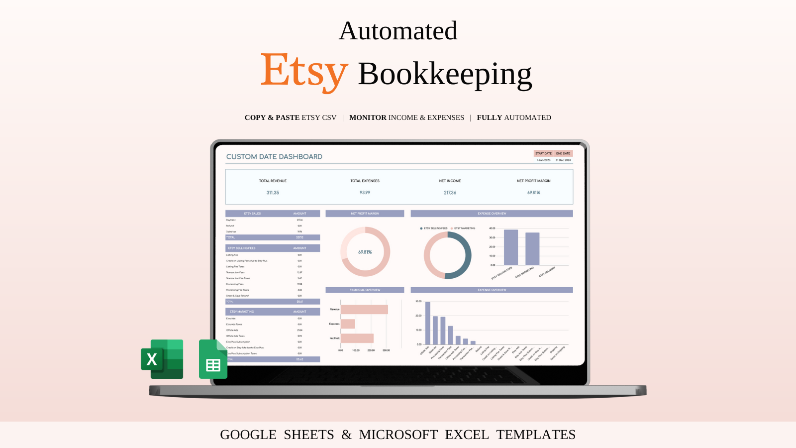 Etsy Seller Automatic Bookkeeping in Excel and Google Sheets
