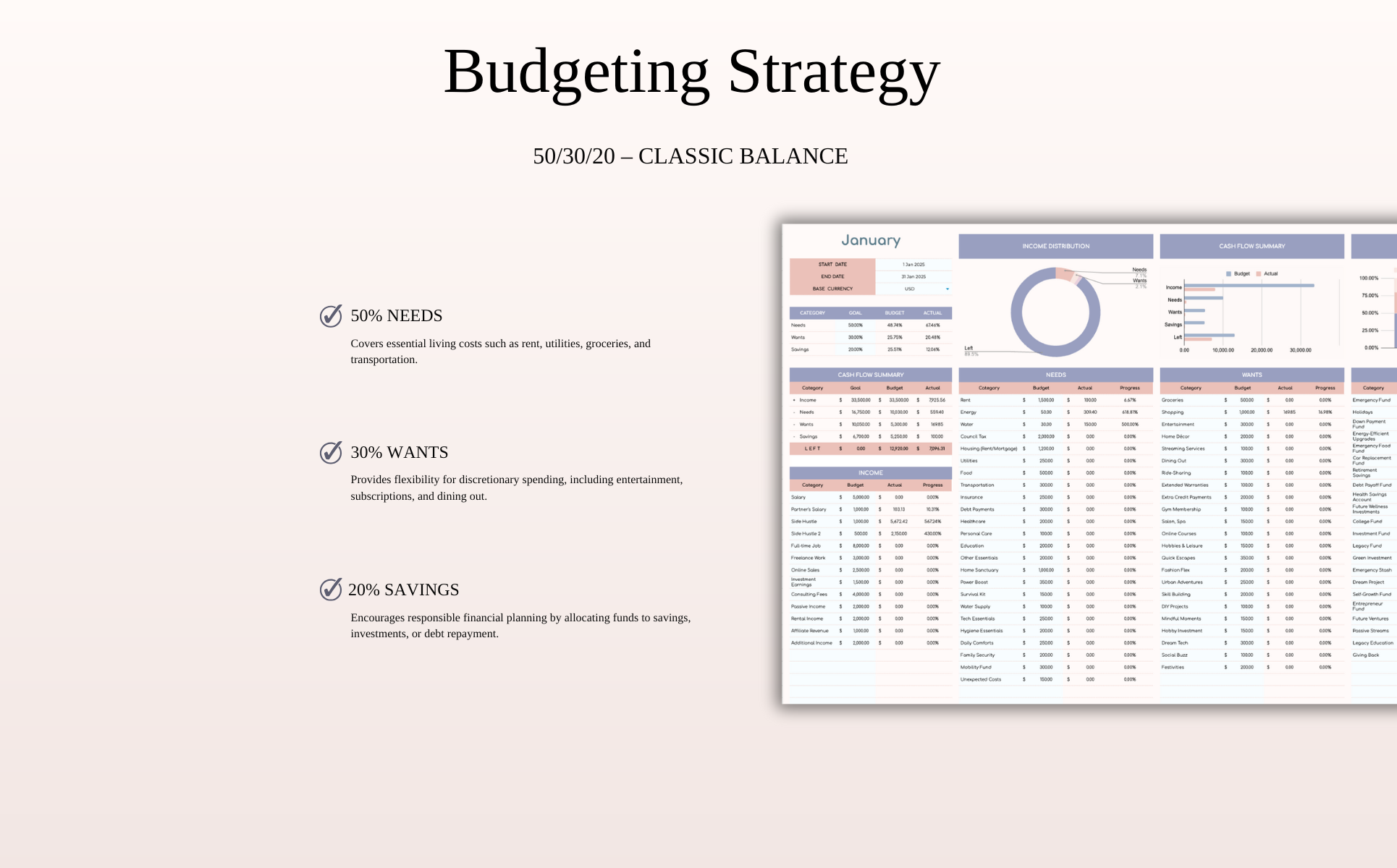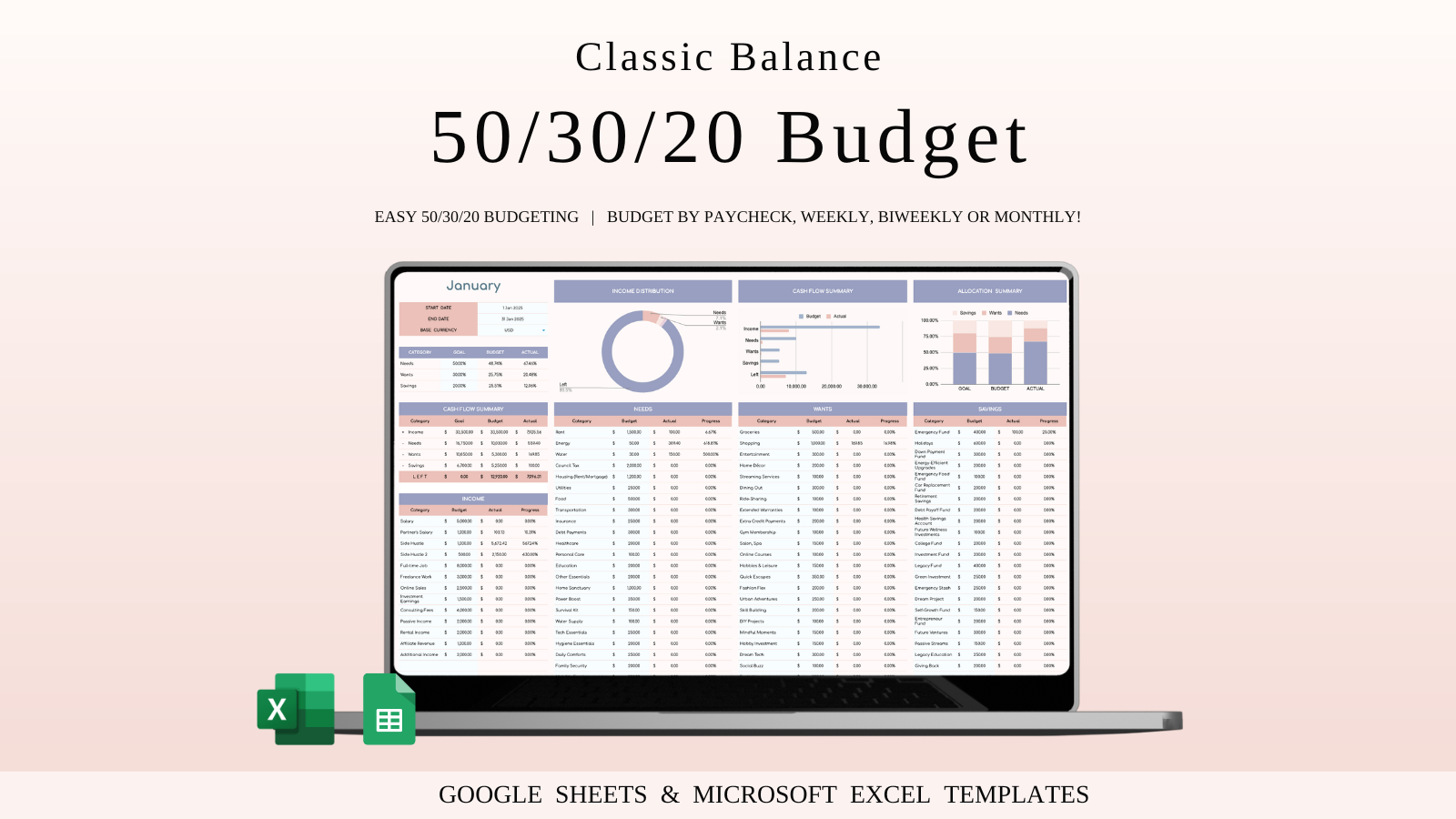 FREE 50/30/20 Budget Spreadsheet Template | Excel & Google Sheets