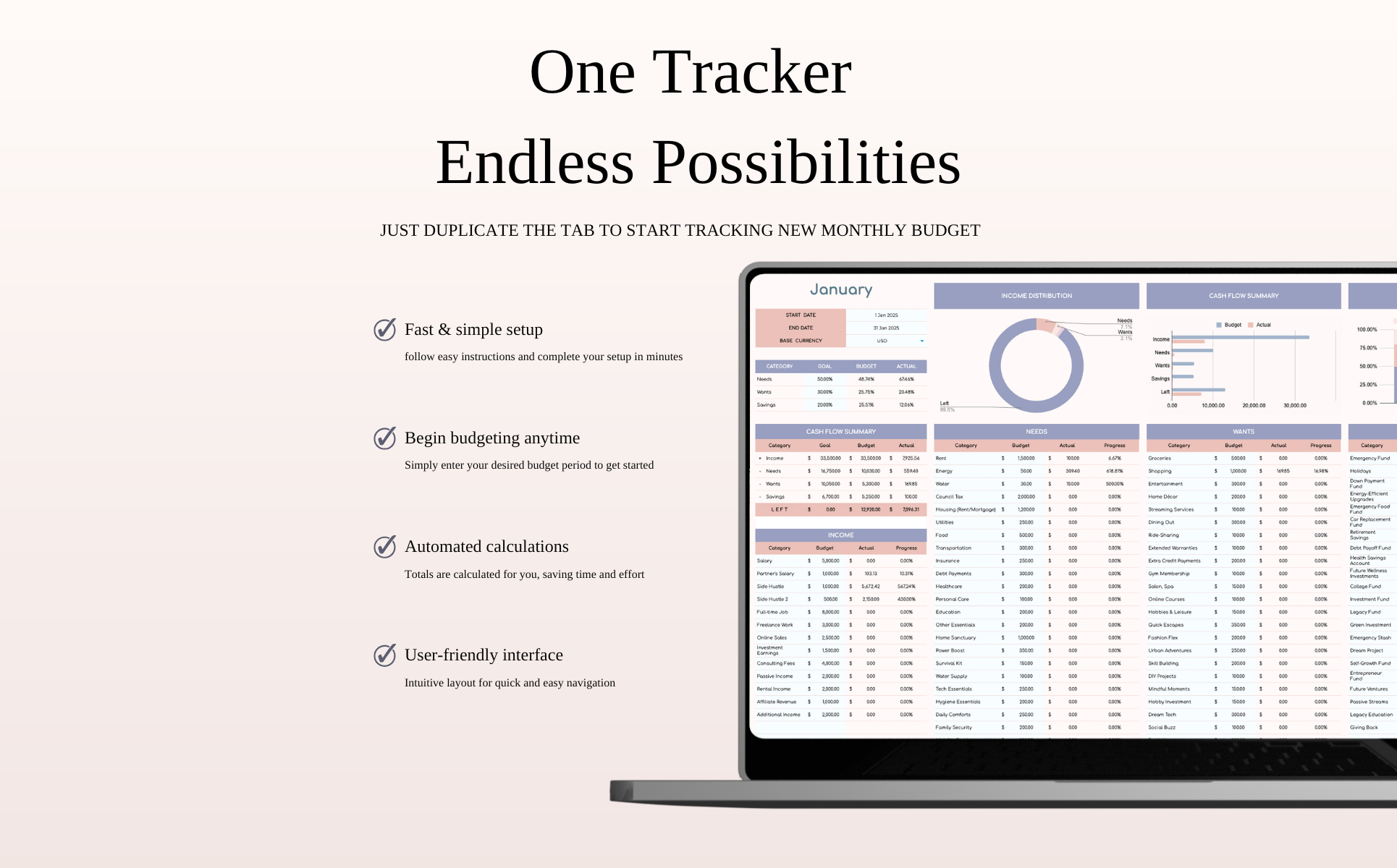 - Flexible: Easily update your numbers or tweak the categories as your financial situation changes.