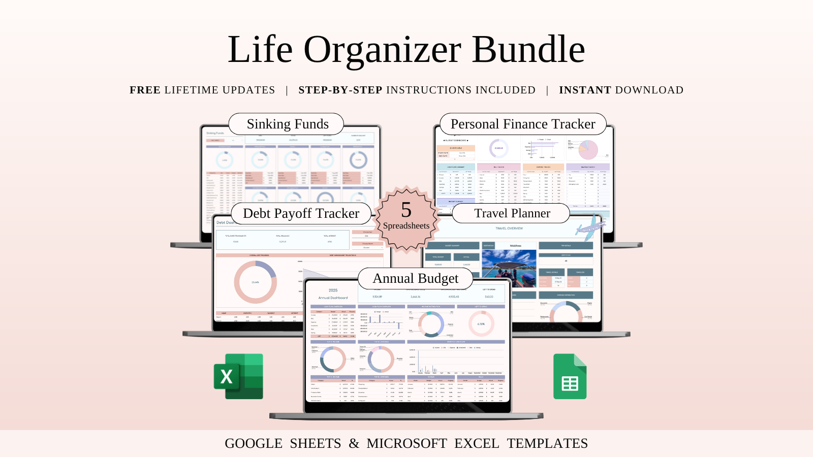 Life Organizer Bundle | Spreadsheet Templates Excel and Google Sheets