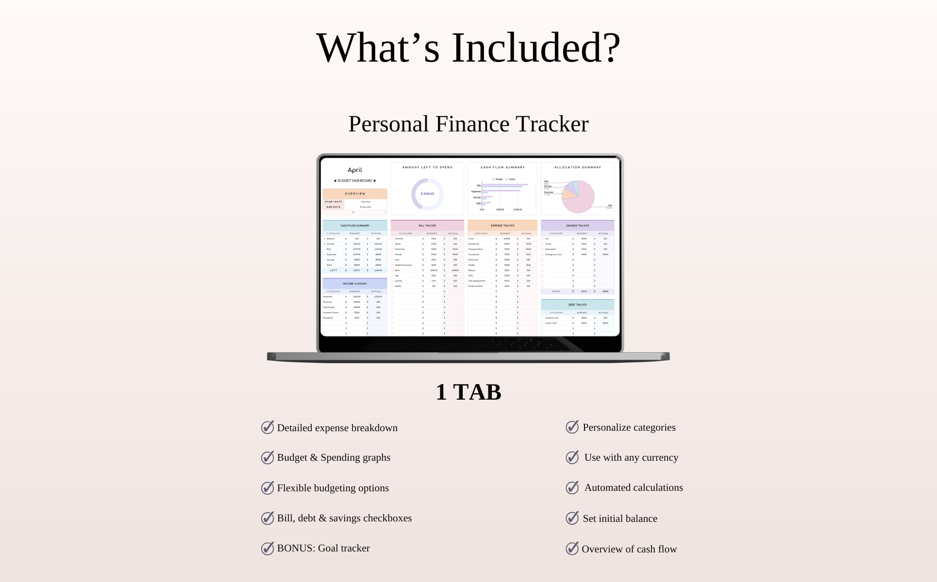 A bright, beginner-friendly spreadsheet that makes income and expense tracking simple and even enjoyable.