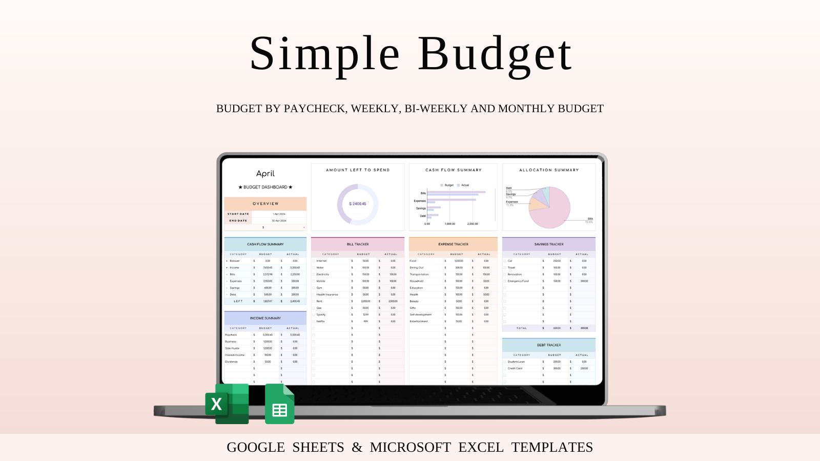 Budget Planner, Budget Spreadsheet Excel, Budget Template, Google Sheets Budget, Monthly Budget Spreadsheet, Weekly Paycheck Budget, Biweekly Budget, Bi-weekly Paycheck Budget, Personal Finance Dashboard, Paycheck Budget Template, Budgeting Template, Monthly Expenses Spreadsheet
