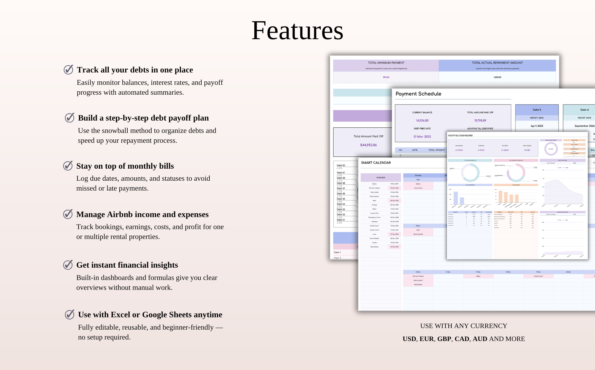 - Works great for personal budgets, small businesses, and Airbnb operations