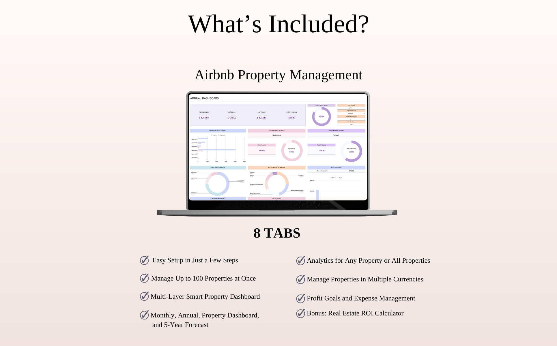 Designed for short-term rental hosts to track income, expenses, bookings, and profits across multiple listings.