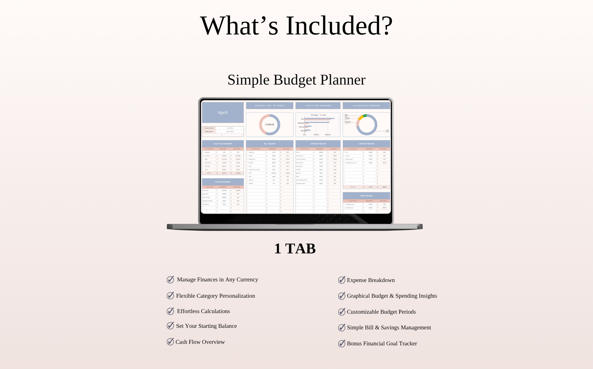 Structure your income, spending, savings, and fixed costs in a simple format that gives you full visibility and control.