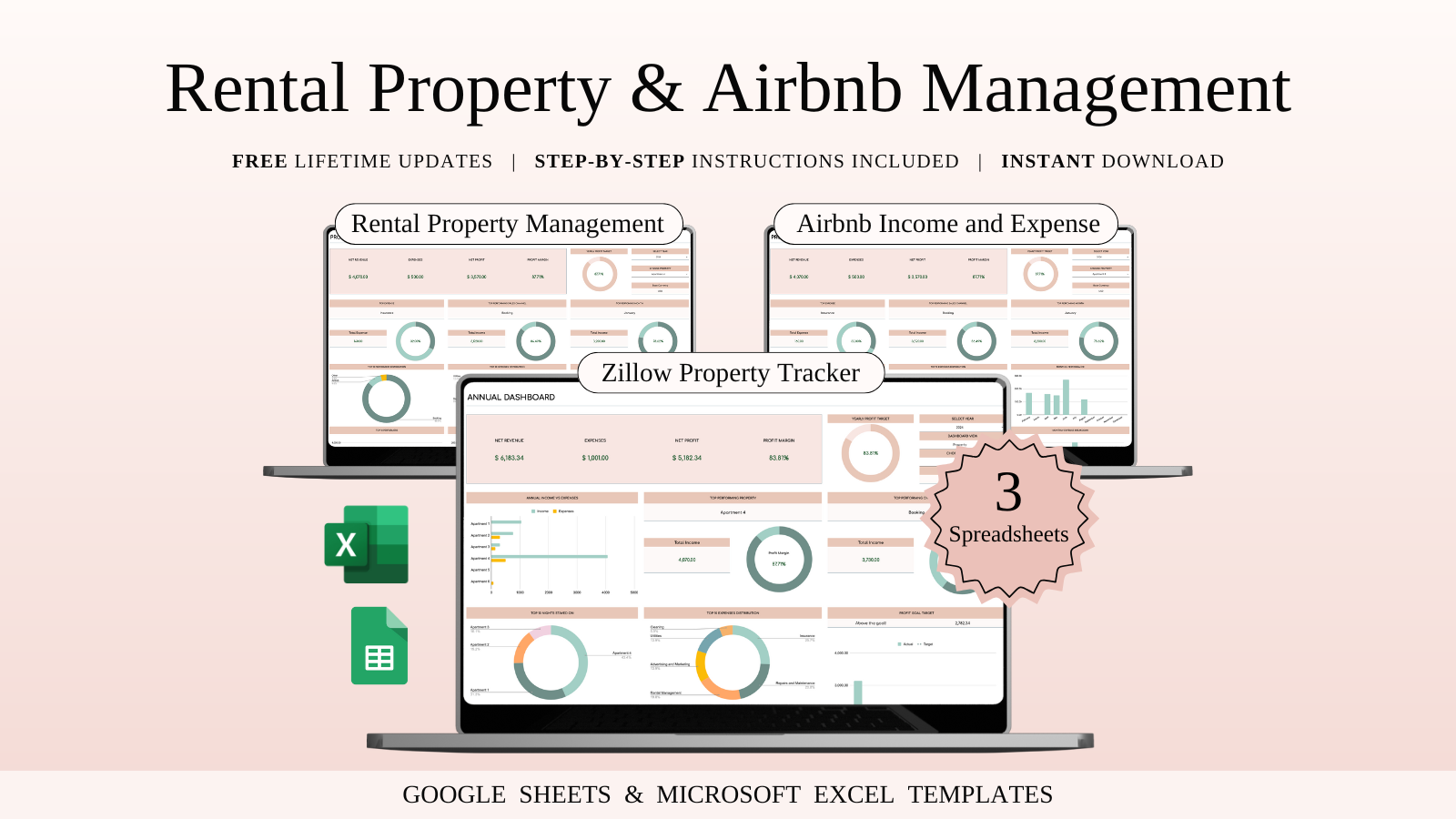 Rental Property and Airbnb Management | Spreadsheet Templates Excel and Google Sheets