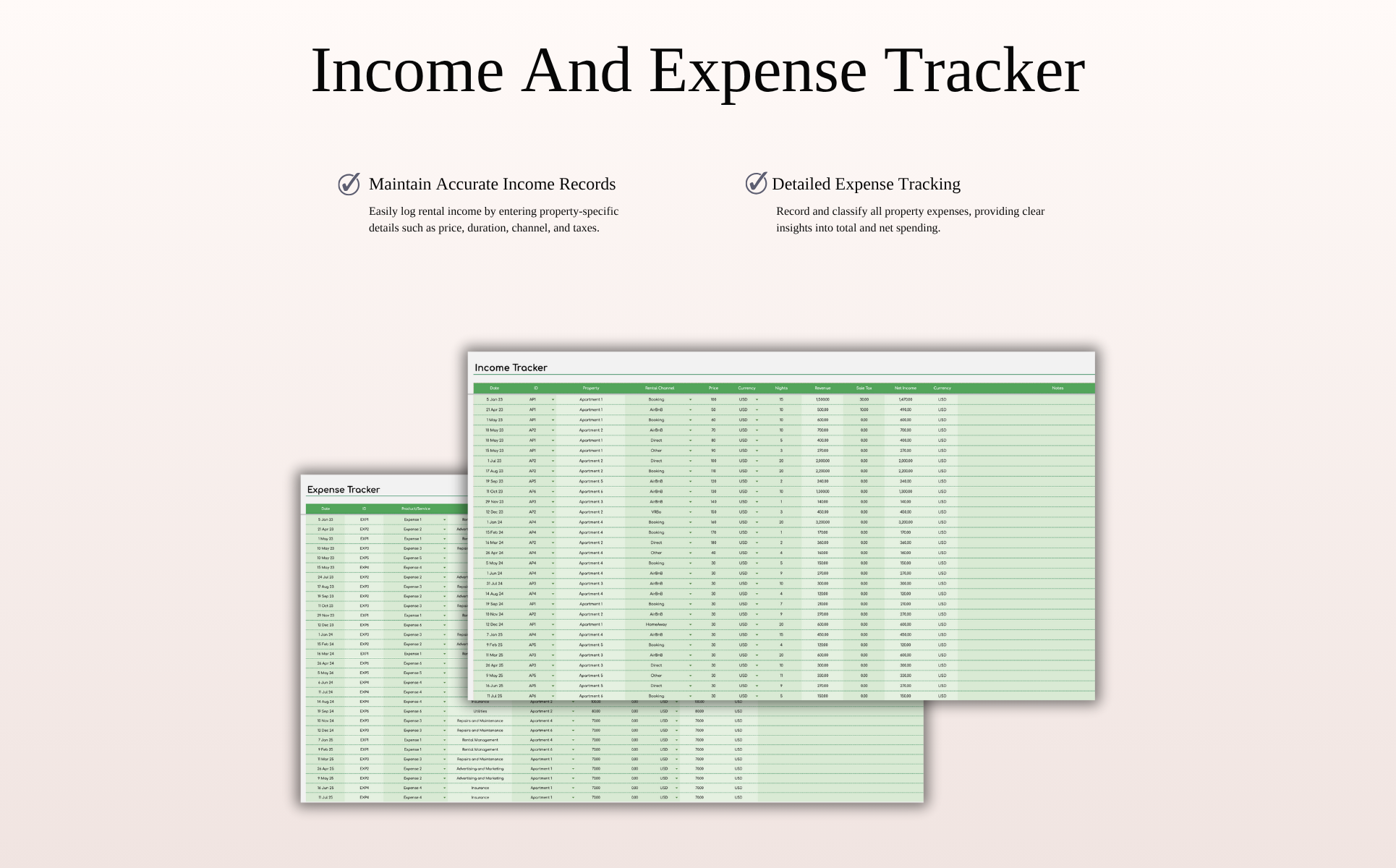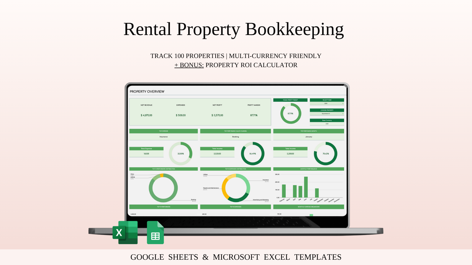 Rental Property Bookkeeping Tracker | Excel and Google Sheets Templates