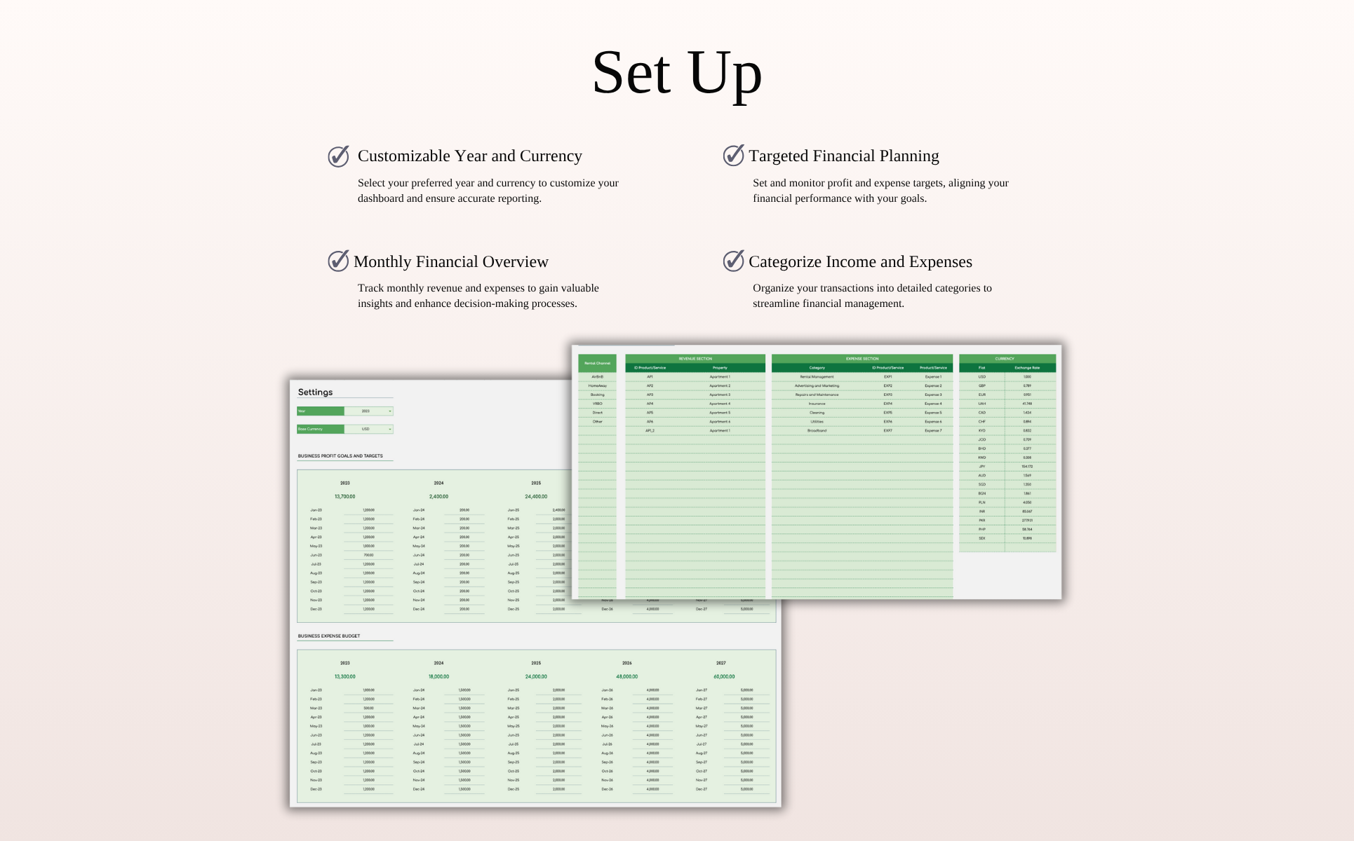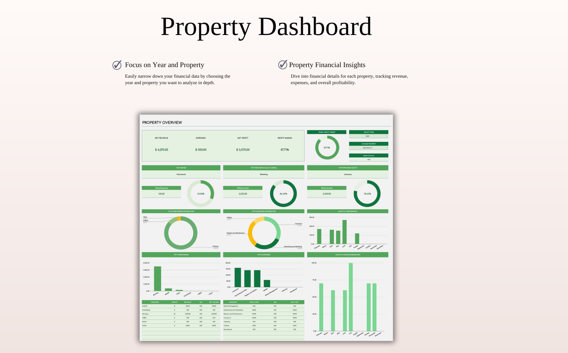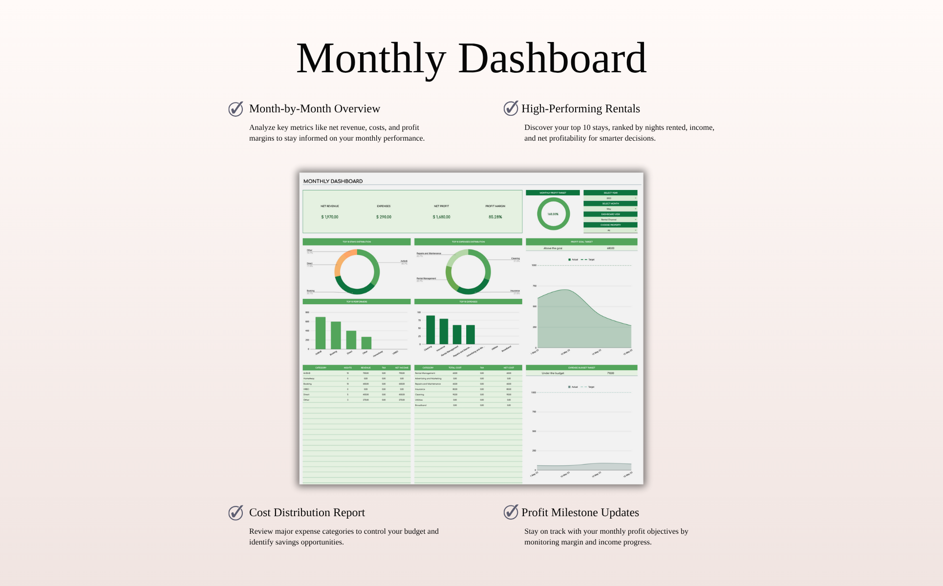 Take control of your rental property cash flow with a powerful yet easy-to-use spreadsheet, designed for landlords and short-term rental hosts managing listings on Airbnb, VRBO, Booking.com, and more.