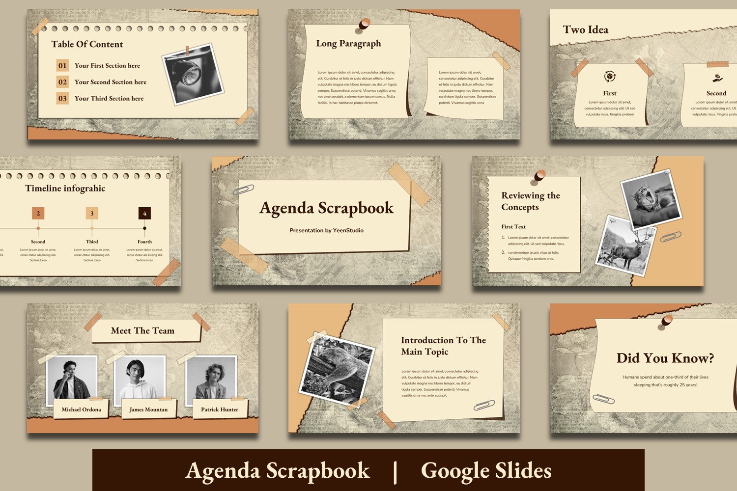 Introducing Agenda Scrapbook Google Slides Presentation Template
