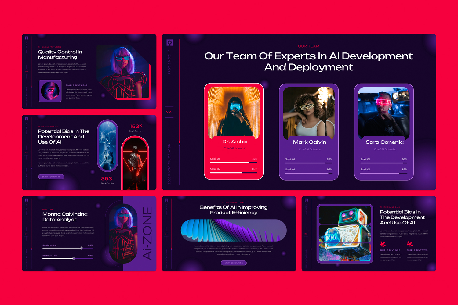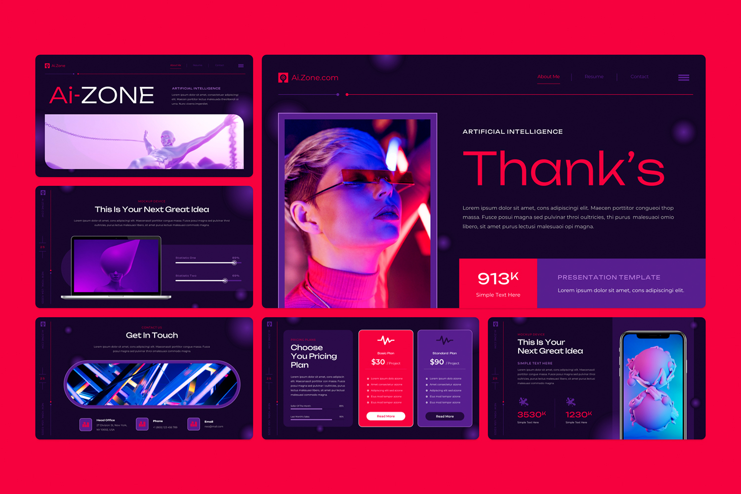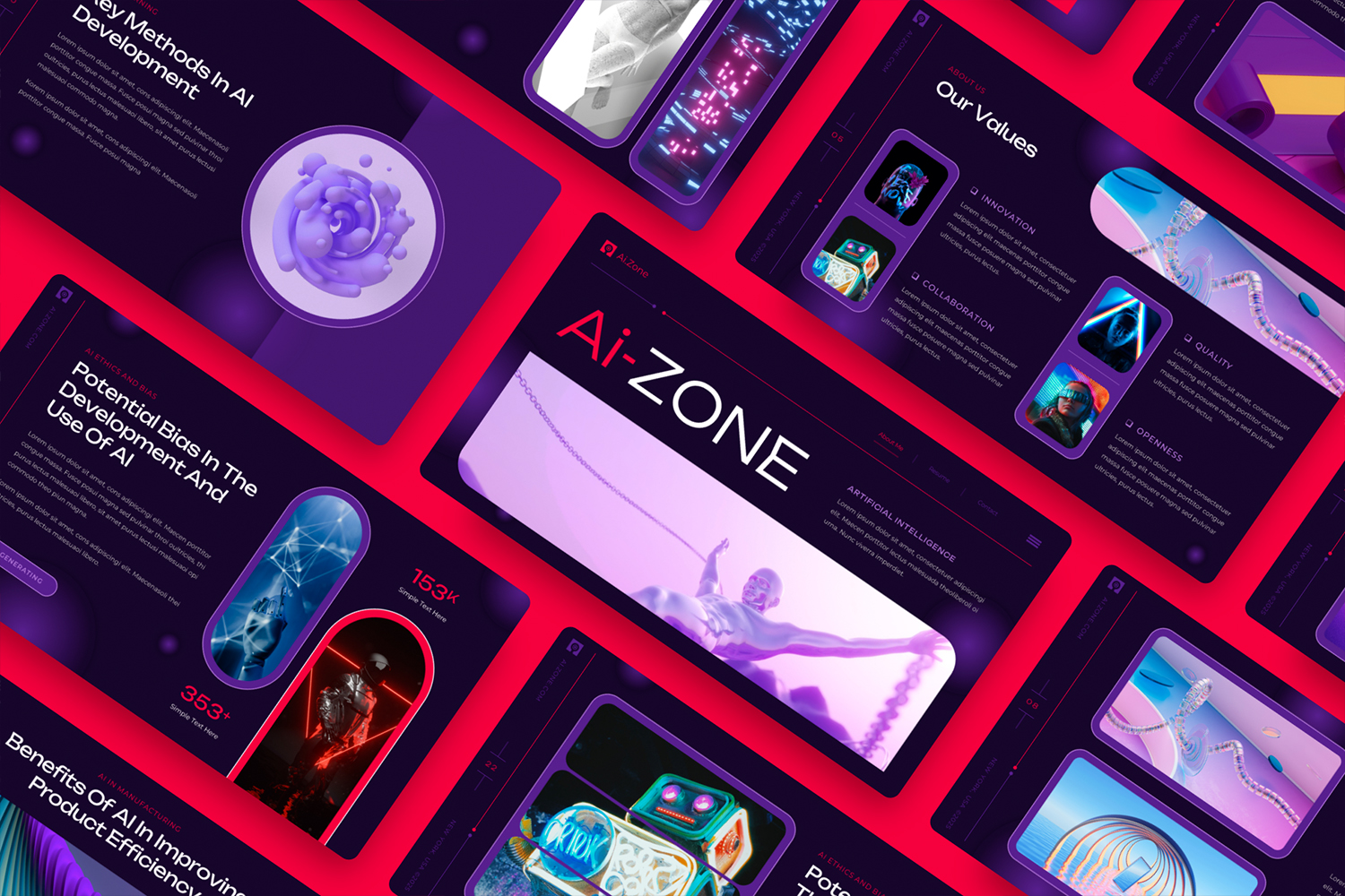 "Aizone - Artificial Intelligence Google Slide Template combines modern design with professional layouts for a truly captivating presentation. Showcase your designs with ease using its elegant, creative and unique features. Impress your audience with stunning visuals and dynamic."