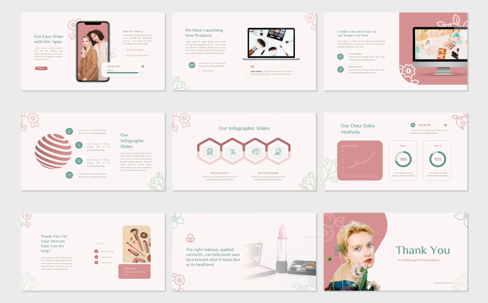 Aurora - Beauty & Cosmetics Google Slides Presentation is designed for showcasing everything related to beauty, cosmetics, wellness, and personal care. However, this template is versatile and can be modified for business purposes. Use it for company profiles, portfolios, creative agencies, or even custom presentations. With 30 unique, creative, and elegant slides, this template provides a sleek and professional aesthetic for your content.