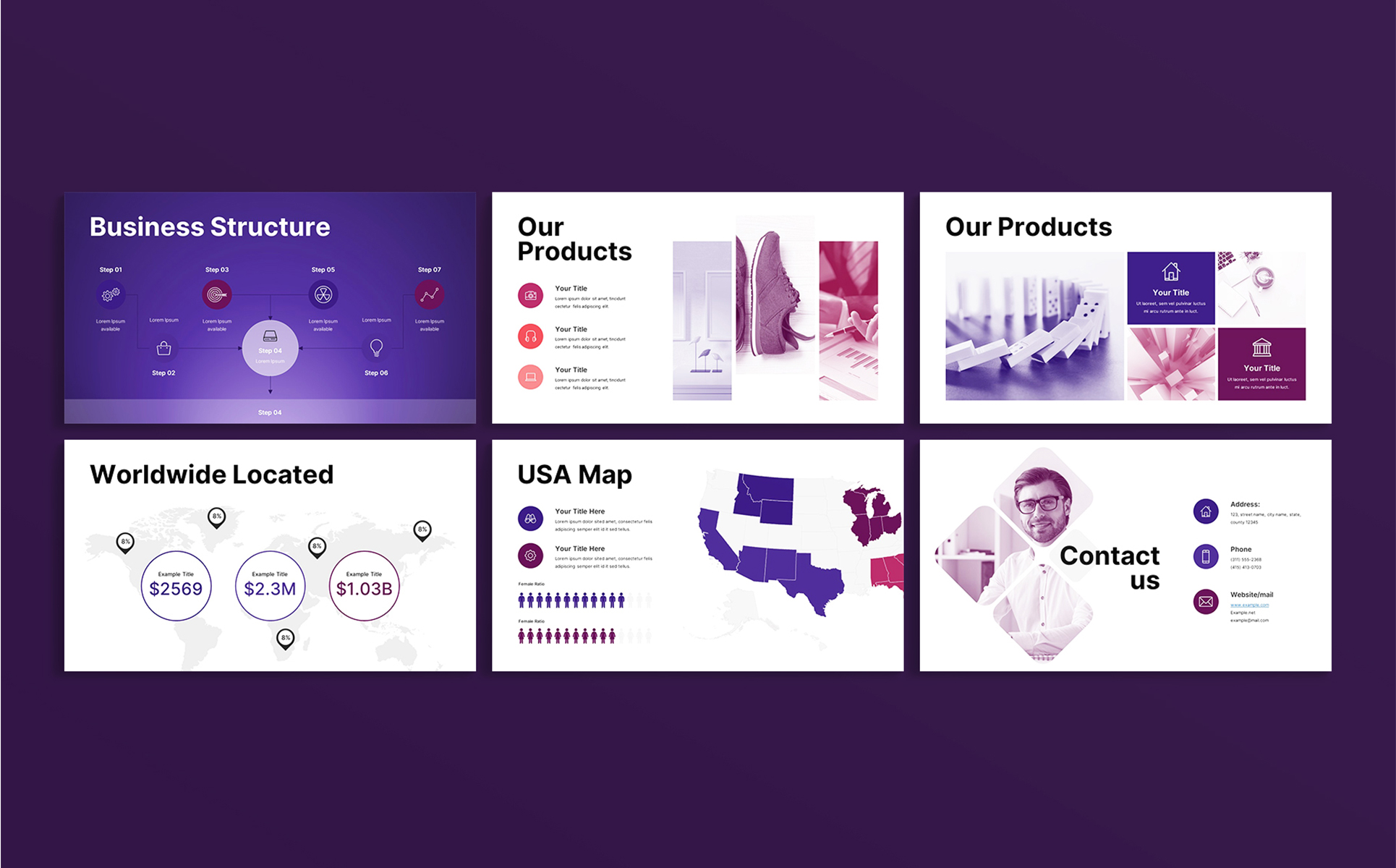 This classic and simple design will make your template more attractive. You can organize your content effectively with a simple diagram. All elements can be edited easily. Enjoy your work!
