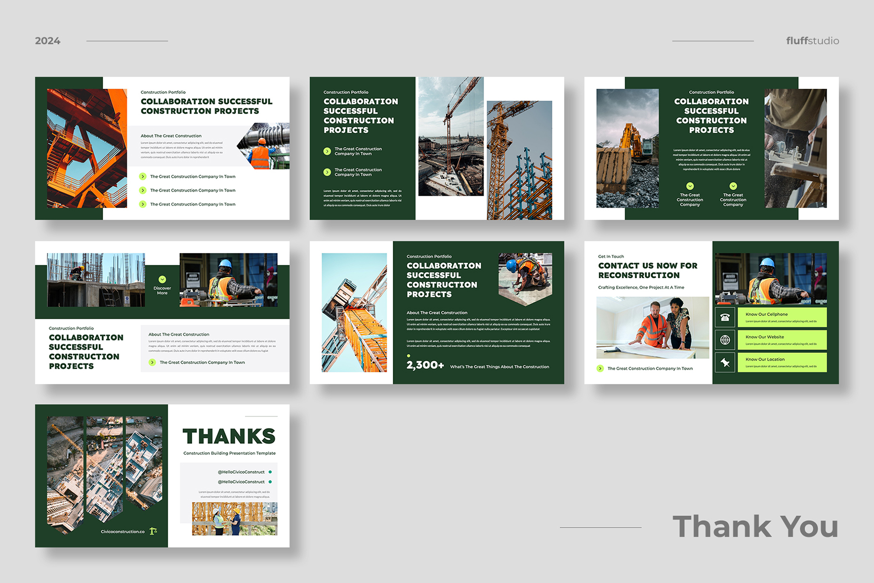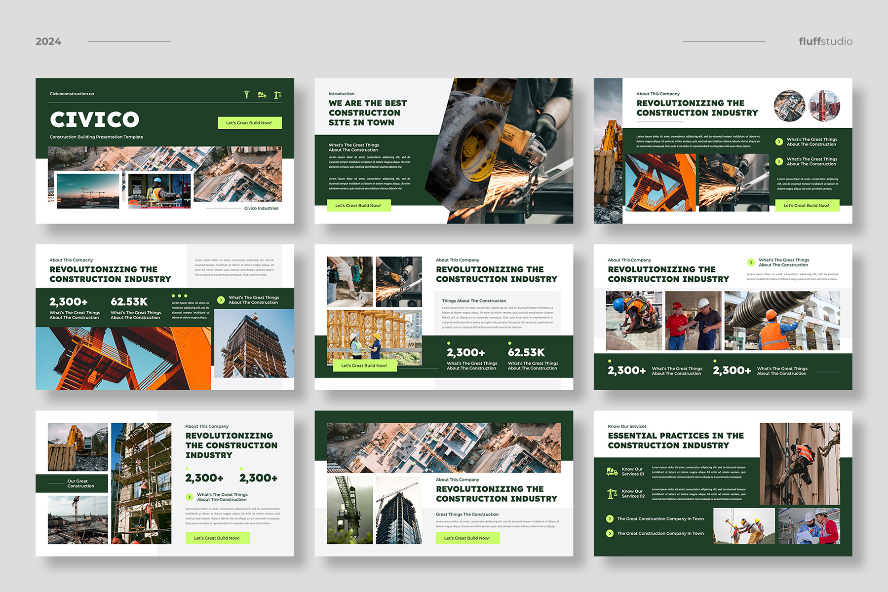 Construction Company, Civil Engineering, Factory & Industry - Google Slides Template