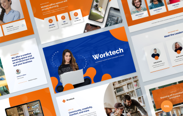 If you are looking to create a modern and clean presentation to wow your audience, then look no further. The Worktech Presentation Template contains 36 sleek looking slides that can be easily edited to suit your any professional and business need.